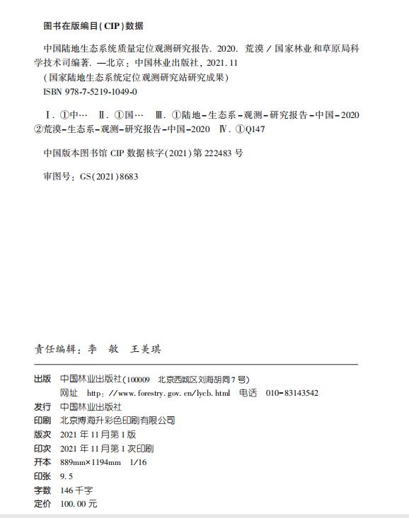 《中国陆地生态系统质量定位观测研究报告.2020.荒漠》