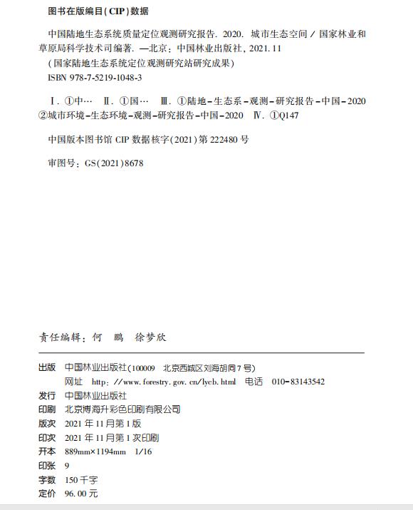 《中国陆地生态系统质量定位观测研究报告.2020.城市生态空间》