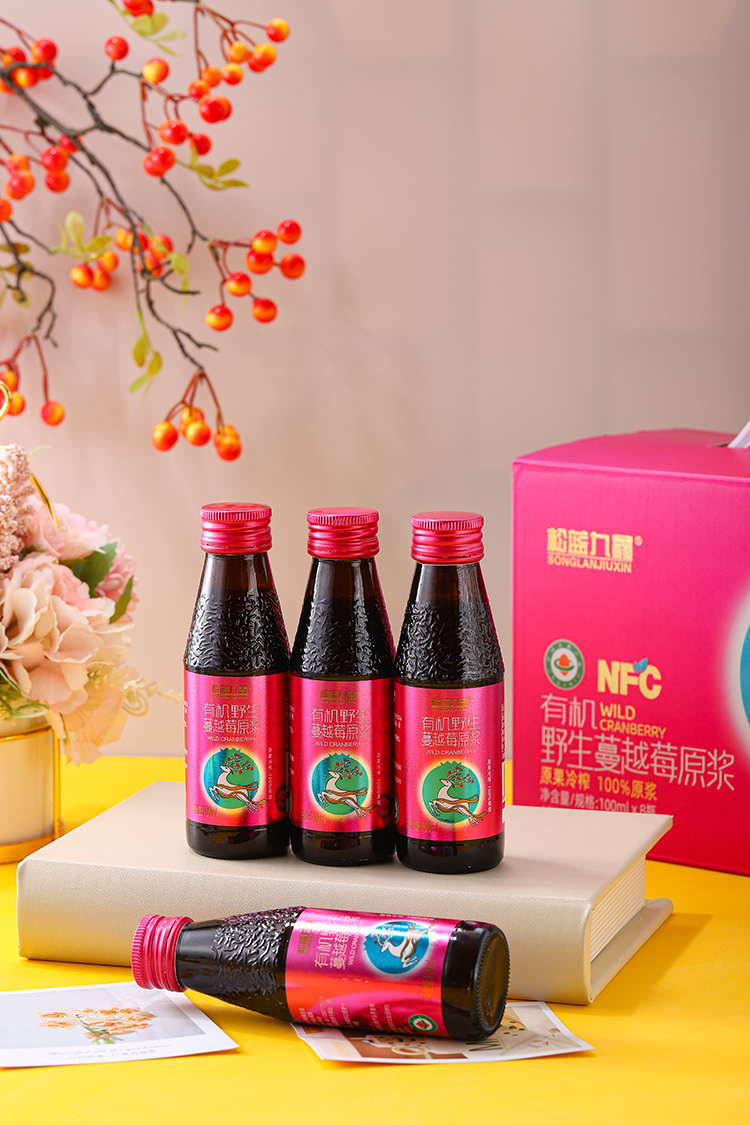 【品名】有机野生蔓越莓原浆 【规格】100ml*8支/箱 【配料】有机野生蔓越莓果 【果浆含量】100% 【保质期】9个月 【贮藏条件】保存于低温阴凉干燥处,避免高温及阳光直射 【饮用方法】直接饮用,冷藏后口感更佳。 【发货地】黑龙江伊春 【发货快递】韵达/邮政(以实际物流为准) 【发货时效】48-72小时,周末节假日顺延 【不发货区域】青海,海南,宁夏,新疆,西藏,港澳台 【卖点】 1、蔓越莓中含有金丝桃苷、五羟黄酮、原花青素等多种对人体有益的活性成分,被誉为“妇科清道夫”,其富含的原花青素、花色苷、单宁酸、熊果酸、,能有效抗氧化抑制私处有害菌群繁殖,呵护女性私密健康。蔓越莓里含有特殊化合物—浓缩单宁酸,有助于抑制多种致病菌细菌生长和繁殖。蔓越莓已经广泛的用于尿道感染炎症的辅助治疗和提取原花青素抗衰老保健护肤品。 2、每箱都带有机认证,手选成熟野生大果,土壤有机质含量高,自然香甜 3、真正0添加有机野生蔓越莓100%,不加水不加糖无添加,每瓶至少200颗野生蔓越莓。 4、NFC工艺 整果研磨,NFC低温冷榨味道鲜,不加水浓稠挂杯的效果,自然果酸味 |
