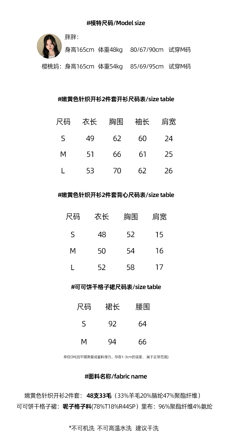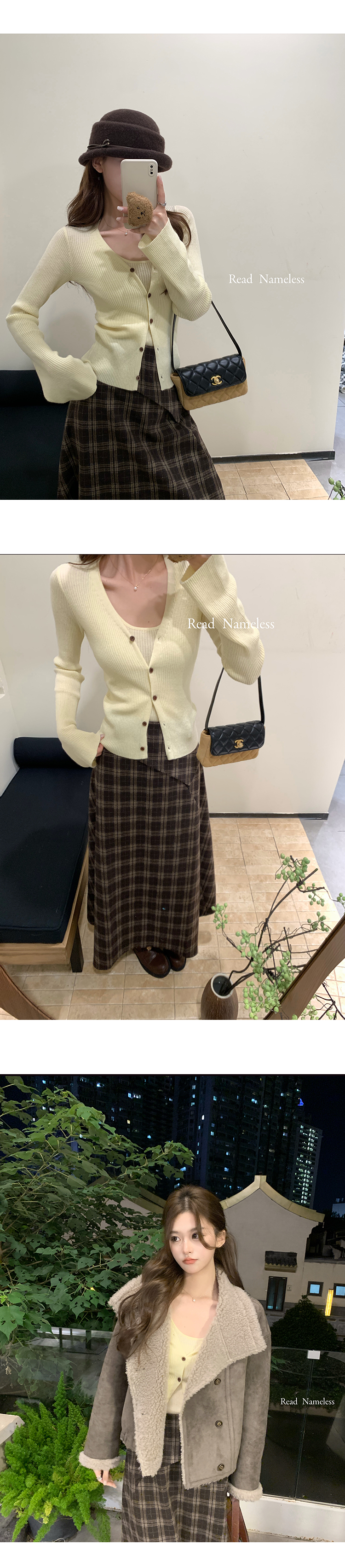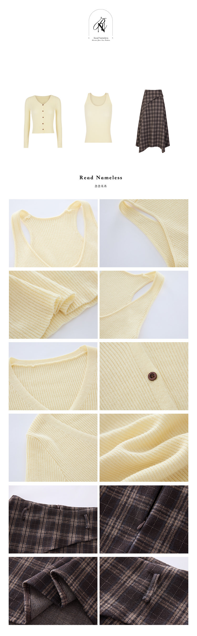 Read Nameless /嫩黄色针织开衫2件套+可可饼干格子裙 2025/11/6