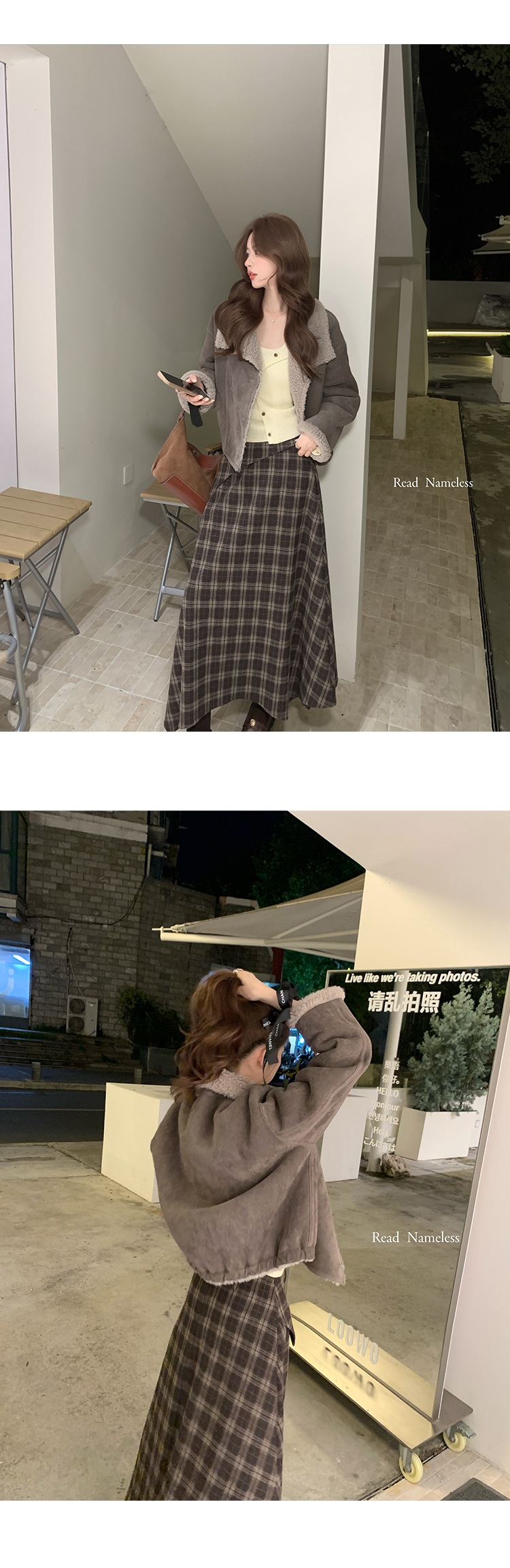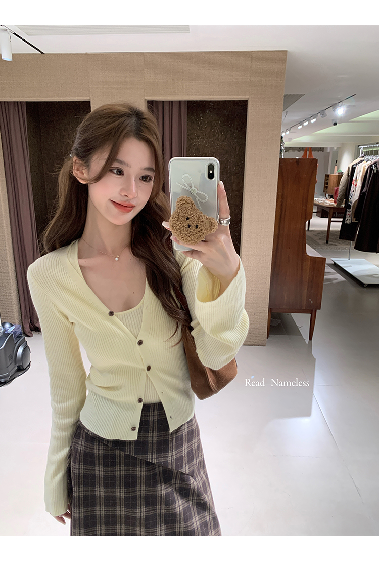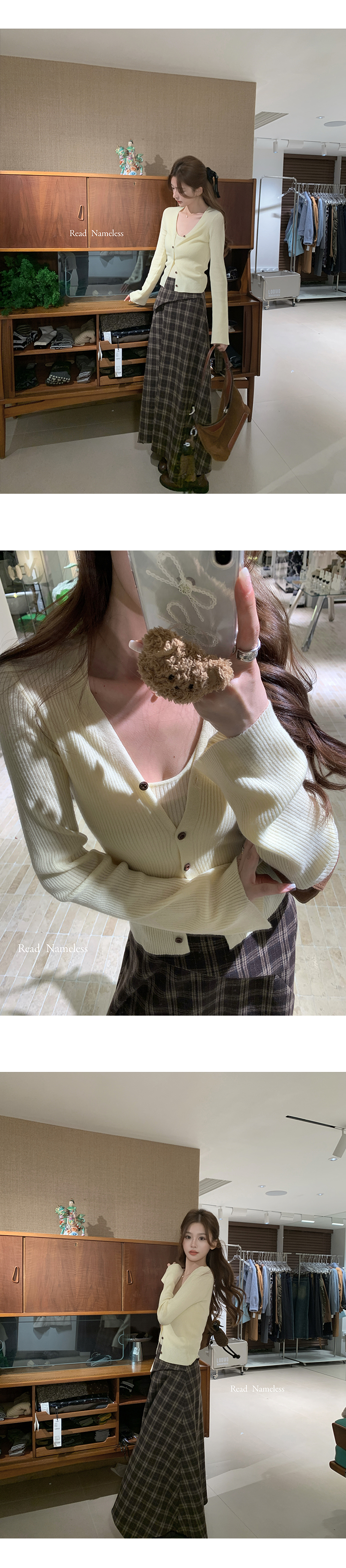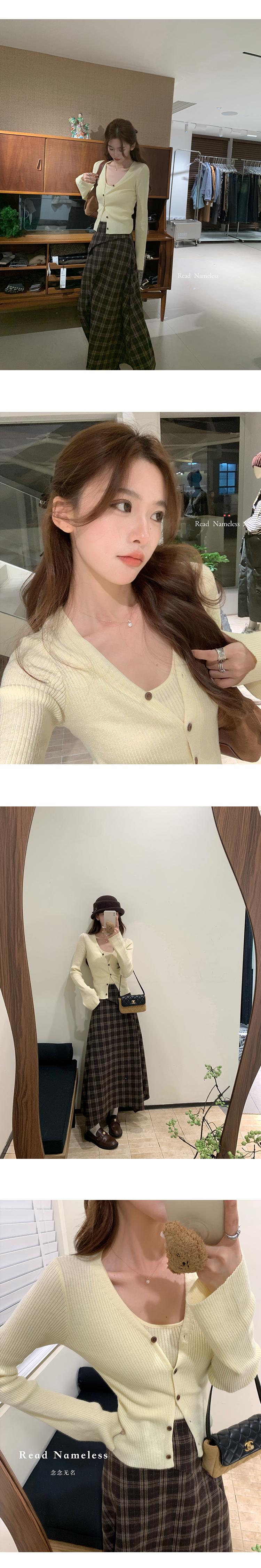 Read Nameless /嫩黄色针织开衫2件套+可可饼干格子裙 2025/11/6
