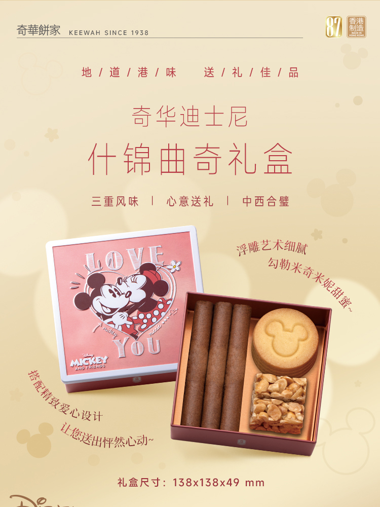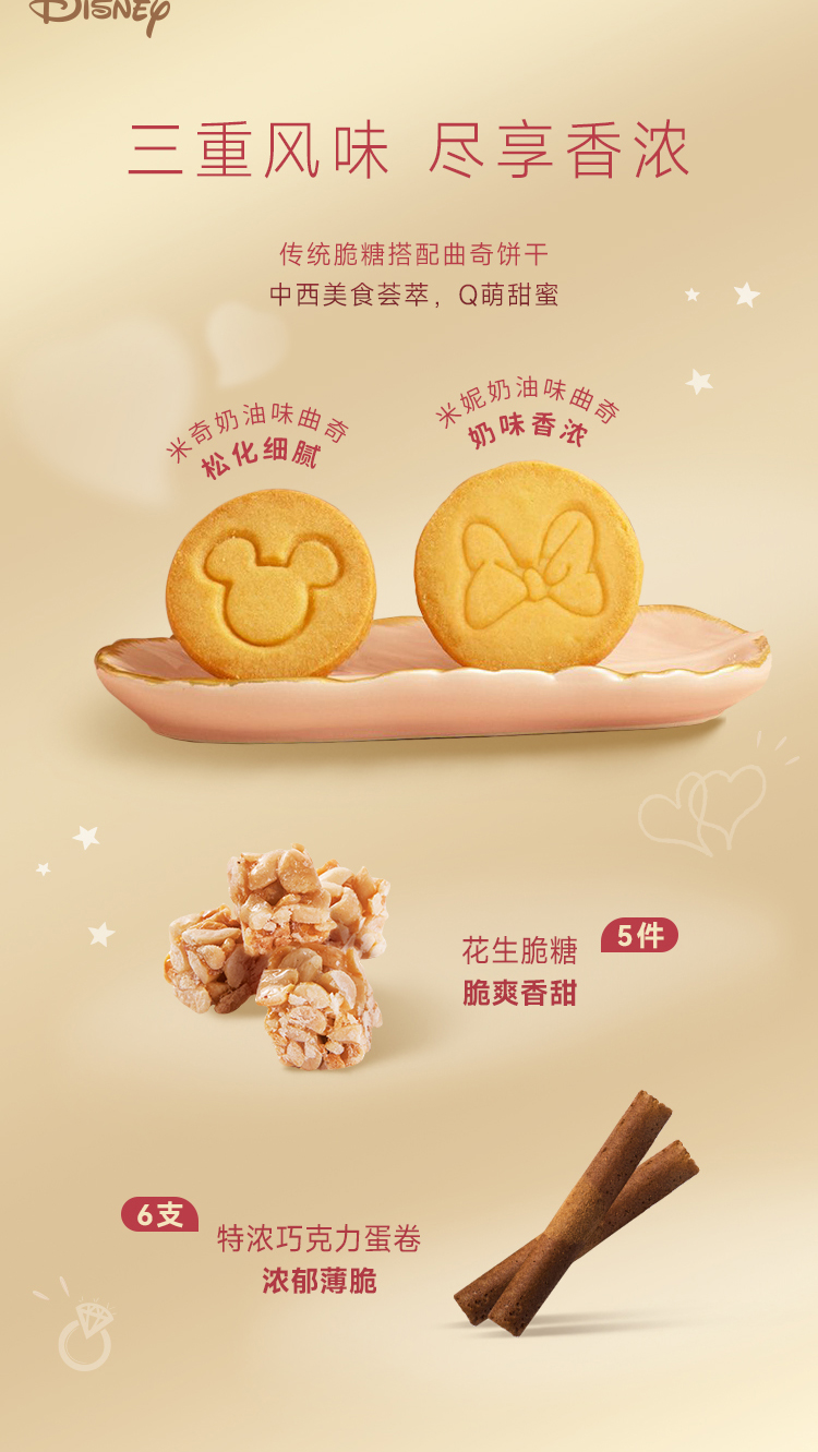 【奇华迪士尼米奇米妮什锦礼盒】米奇奶油味曲奇饼干/米妮奶油味曲奇饼干/花生脆糖