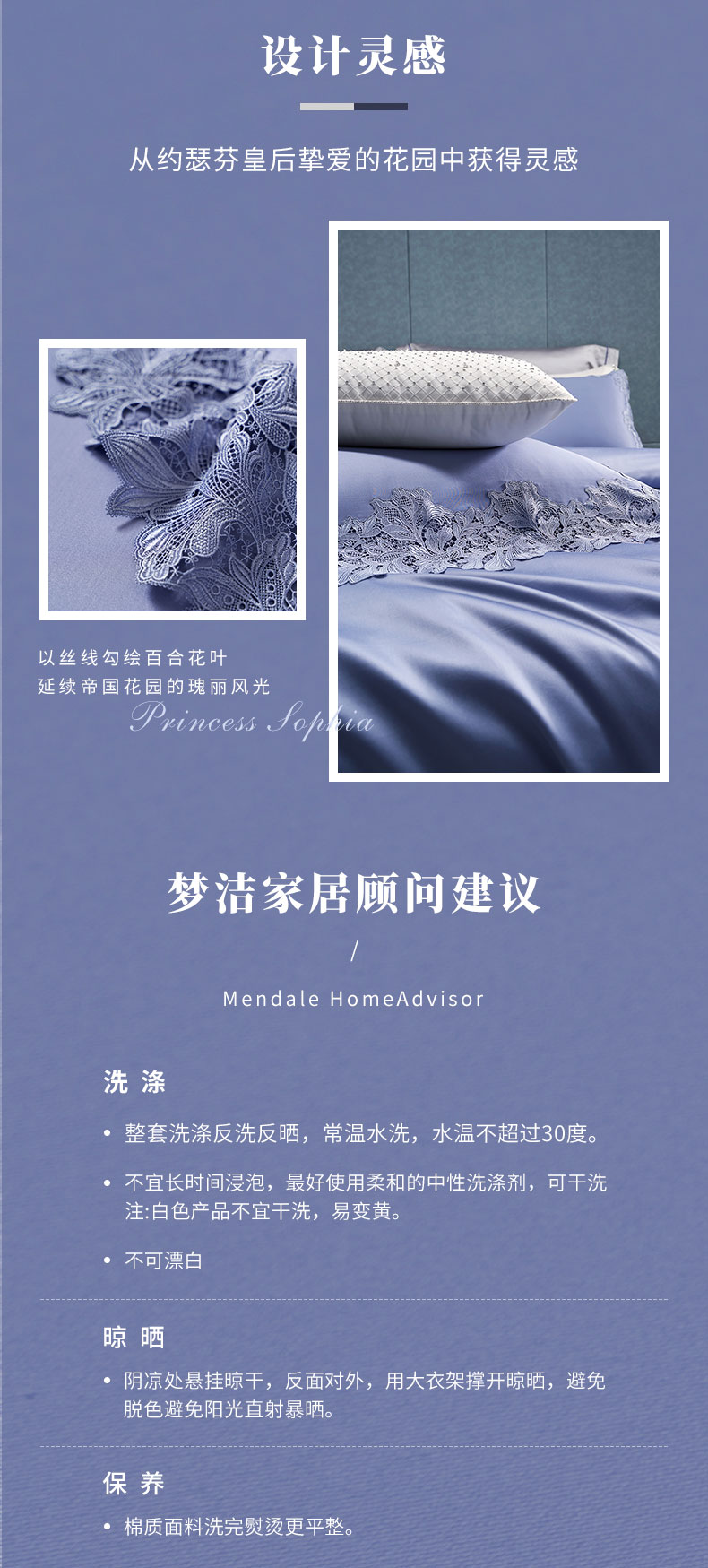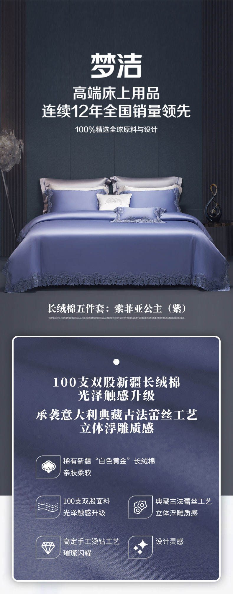 梦洁新疆长绒棉典藏古法蕾丝工艺长绒棉五件套:索菲亚公主