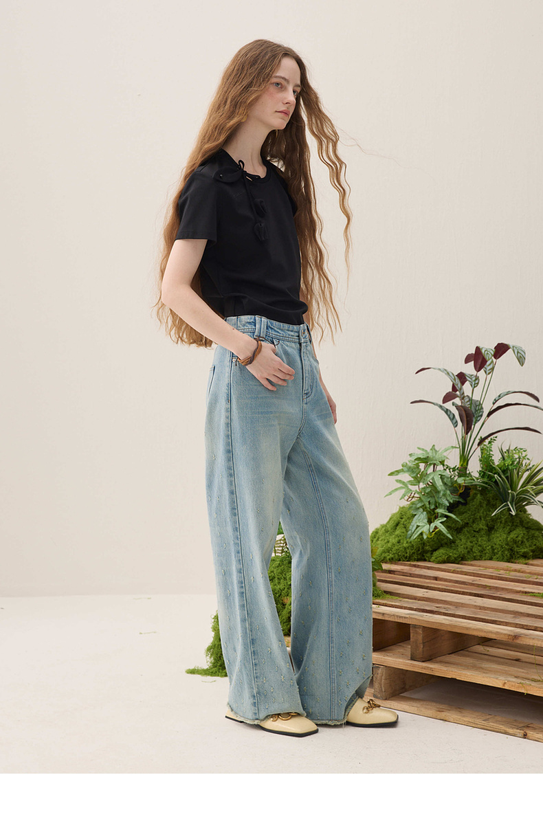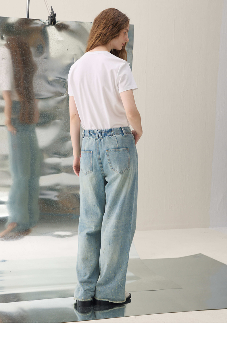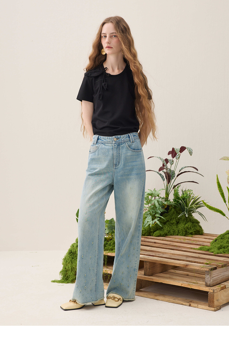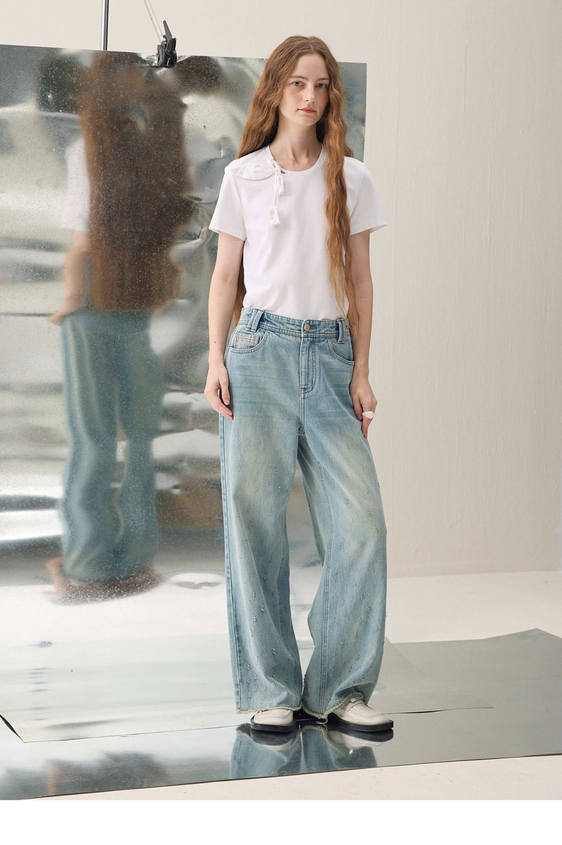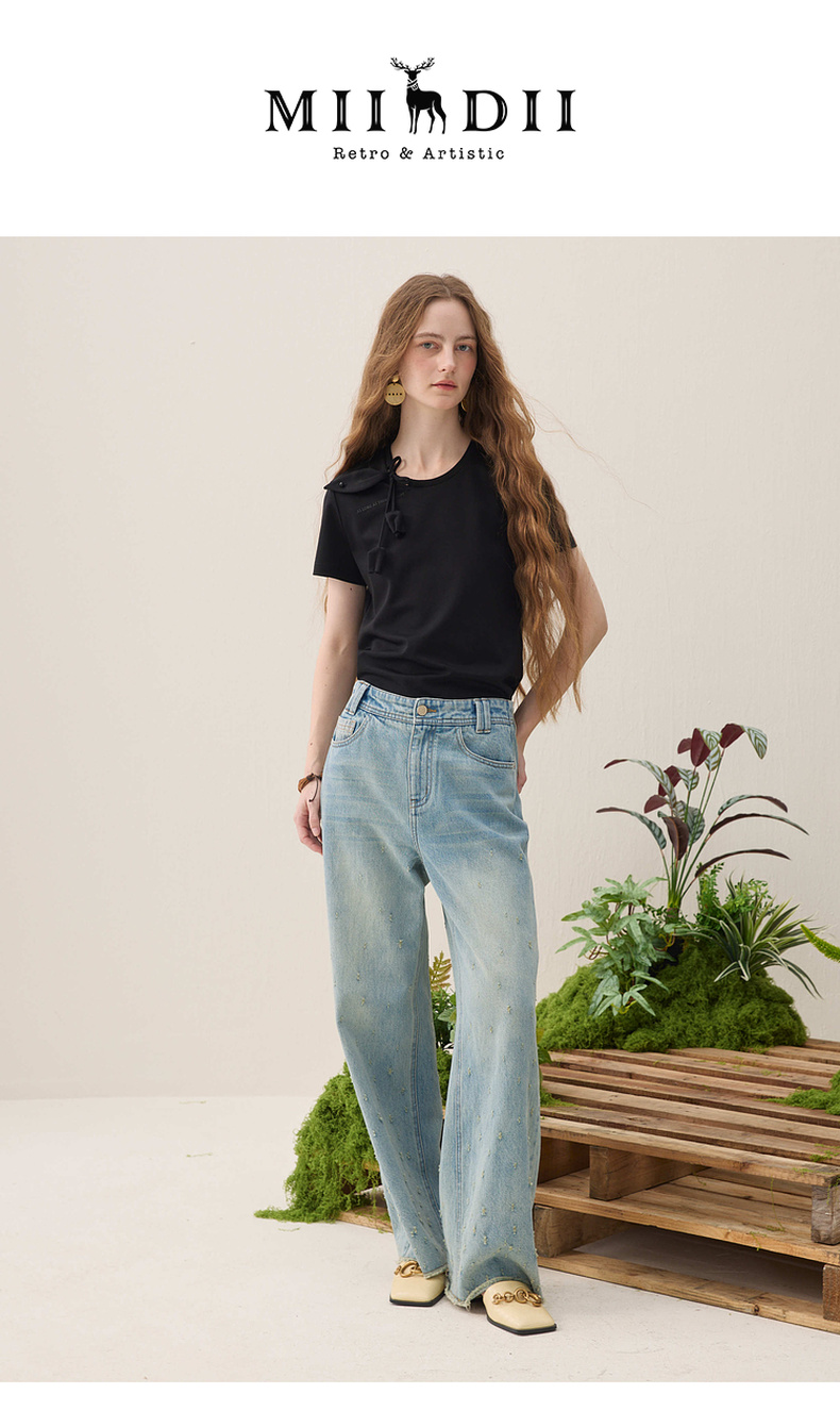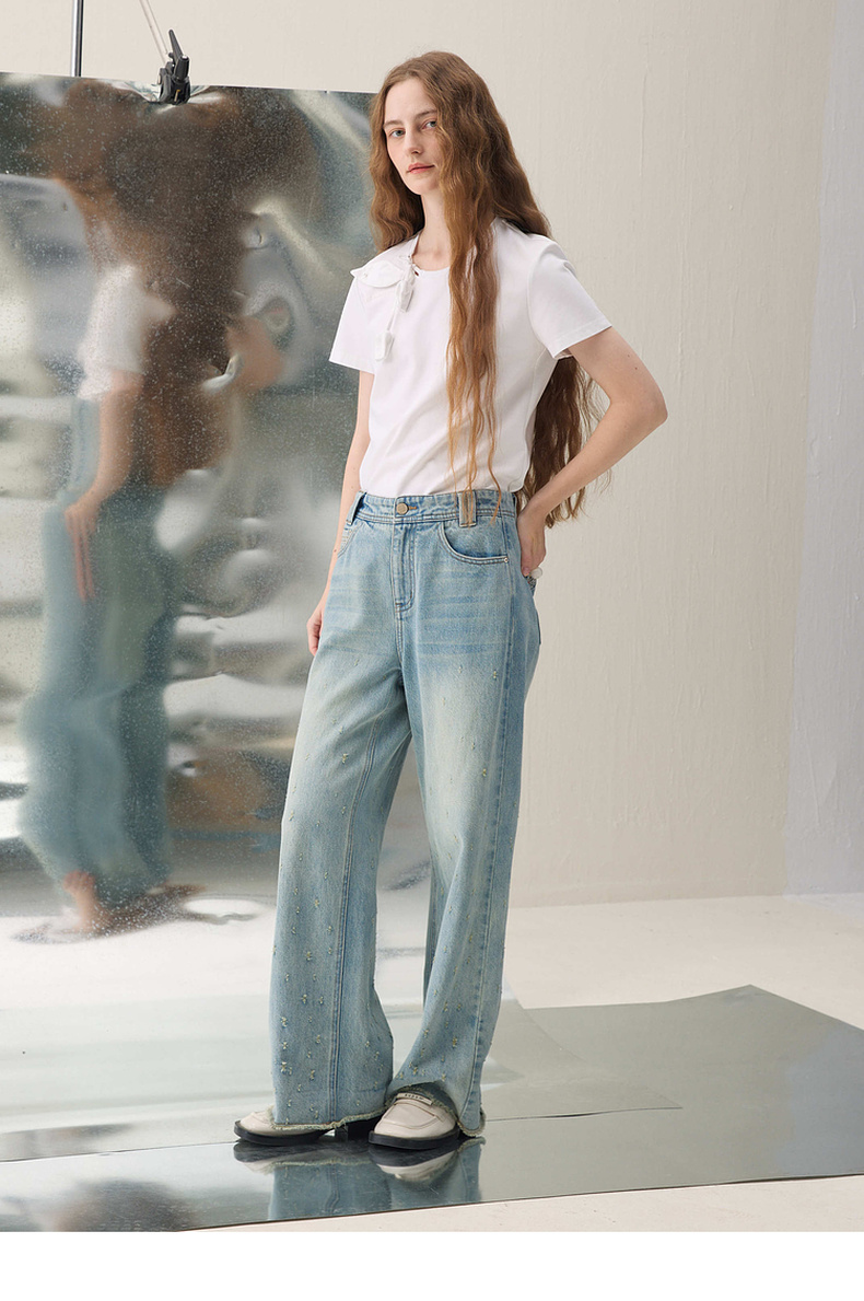 谜底直筒白色牛仔裤长裤2025年冬季新品亲肤绣花宽松女254MJ1478