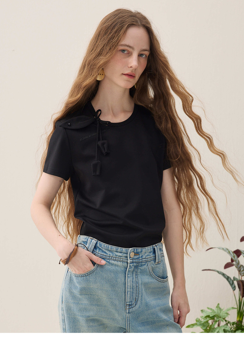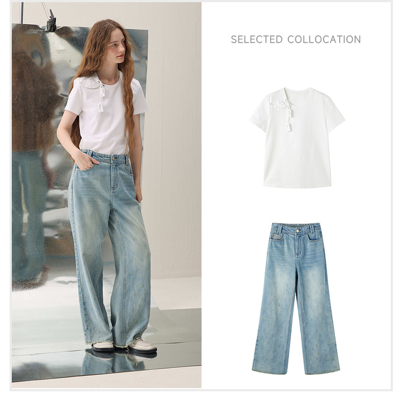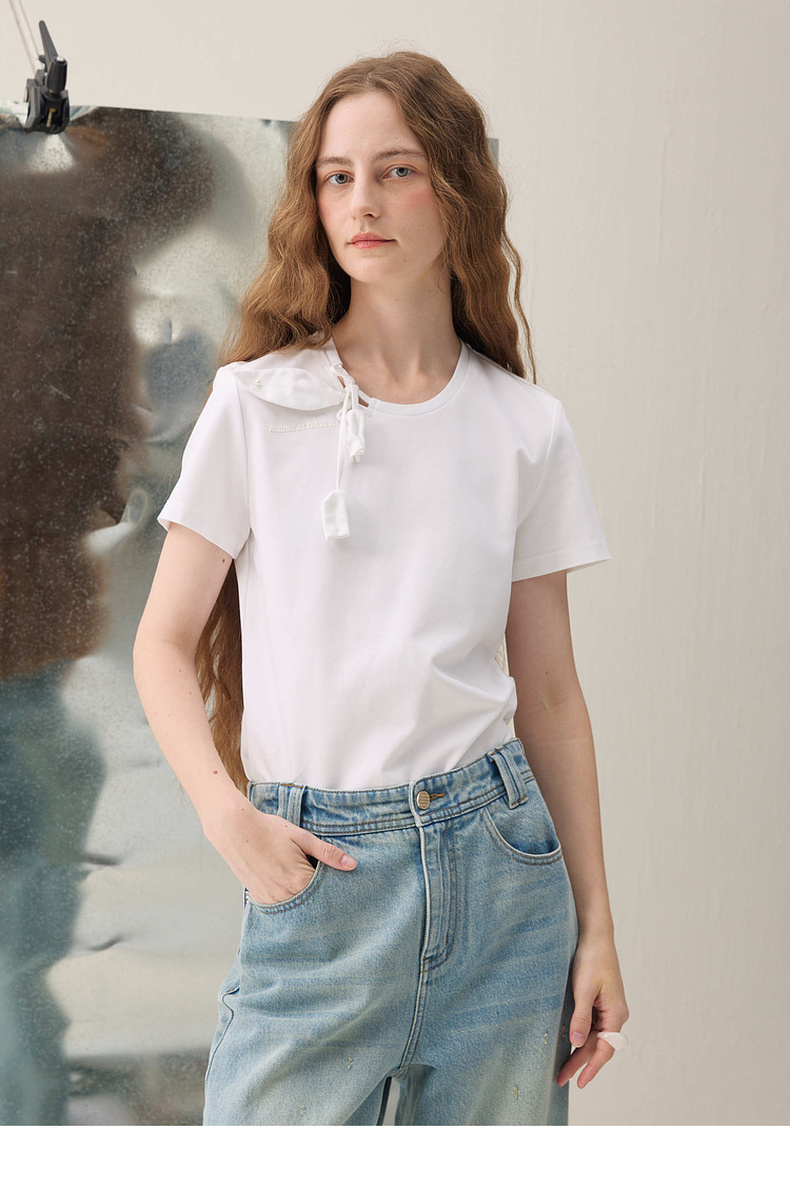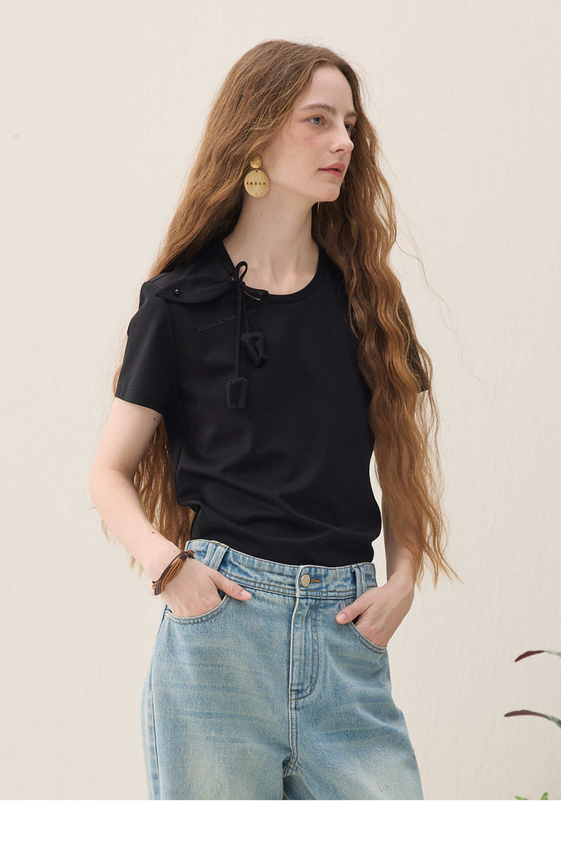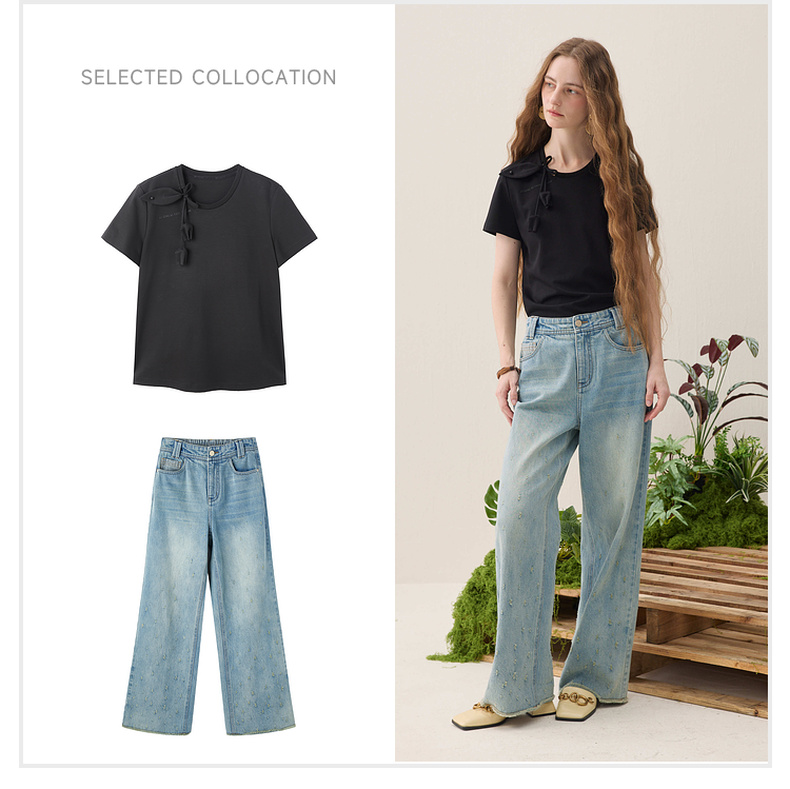 谜底花卉T恤短袖2026年春季新品柔软亲肤珍珠甜美优雅女261MT0056