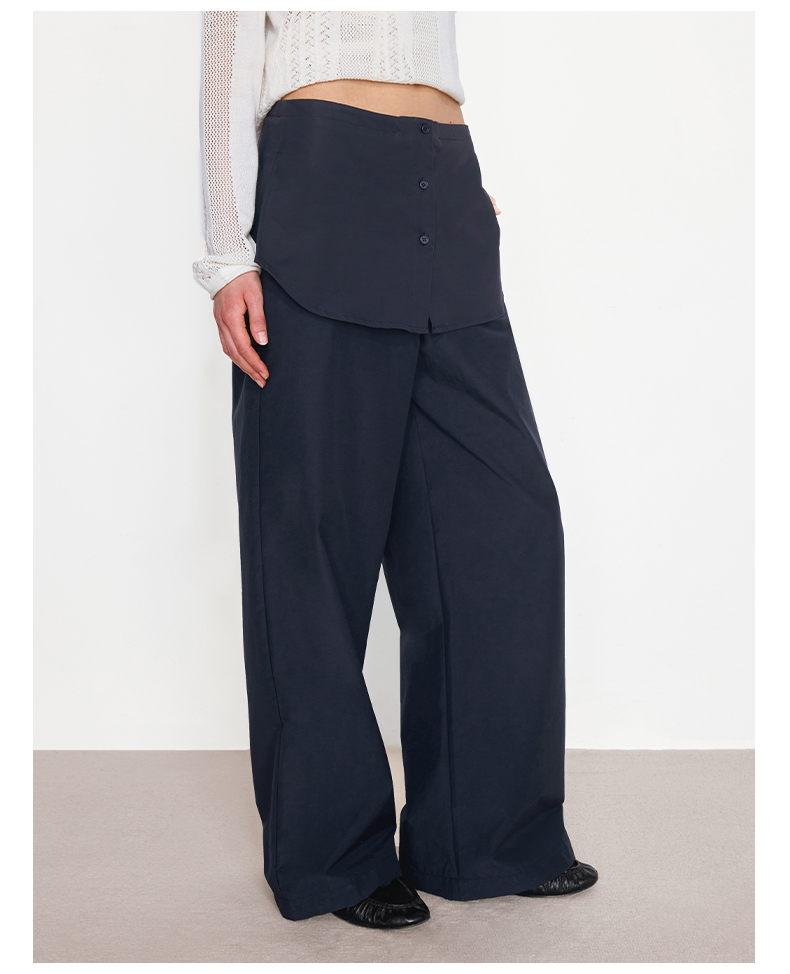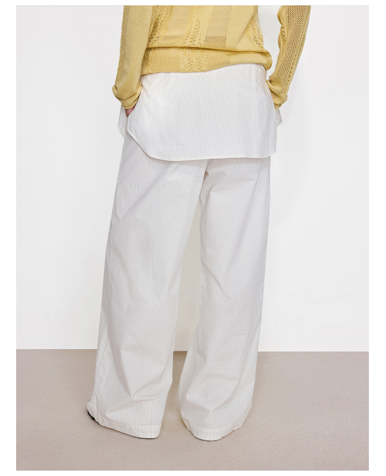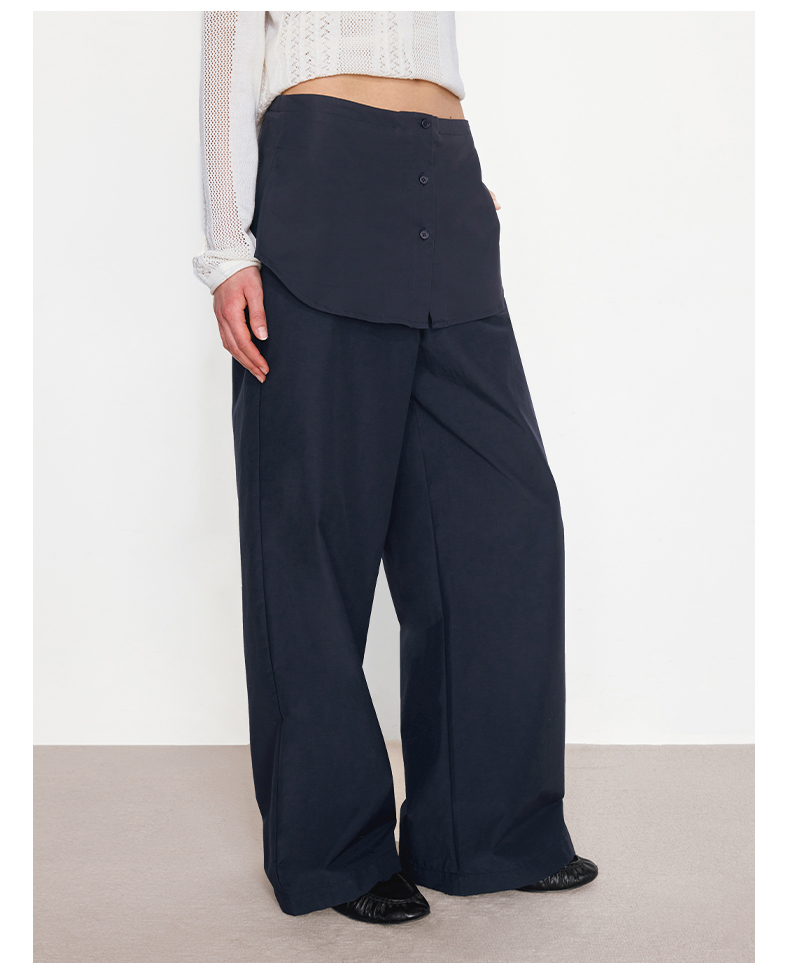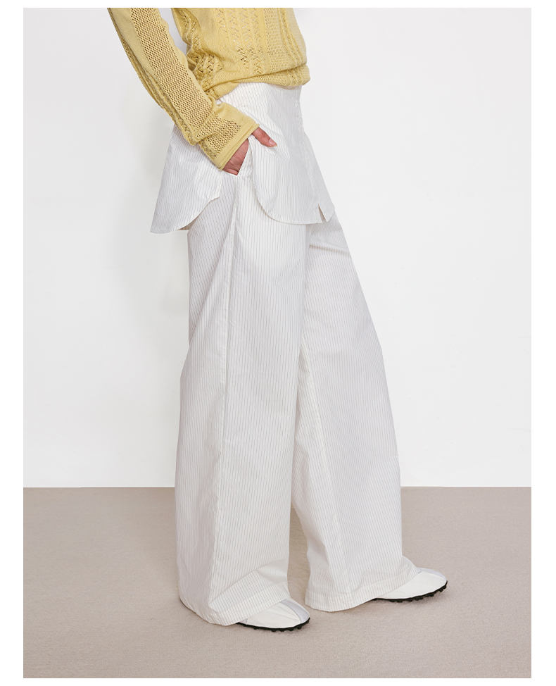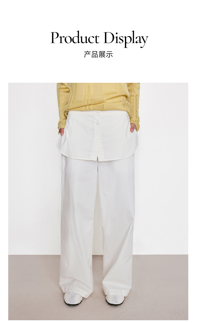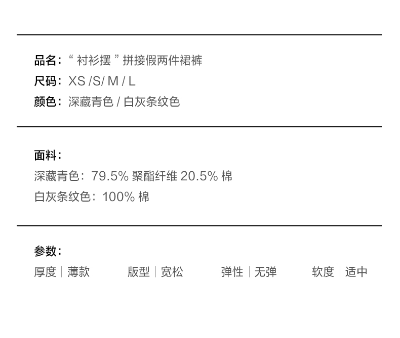 NUTH“衬衫摆”拼接假两件可束脚裙裤女 深藏青色/白灰条纹色(发货/预售时间同步天猫)