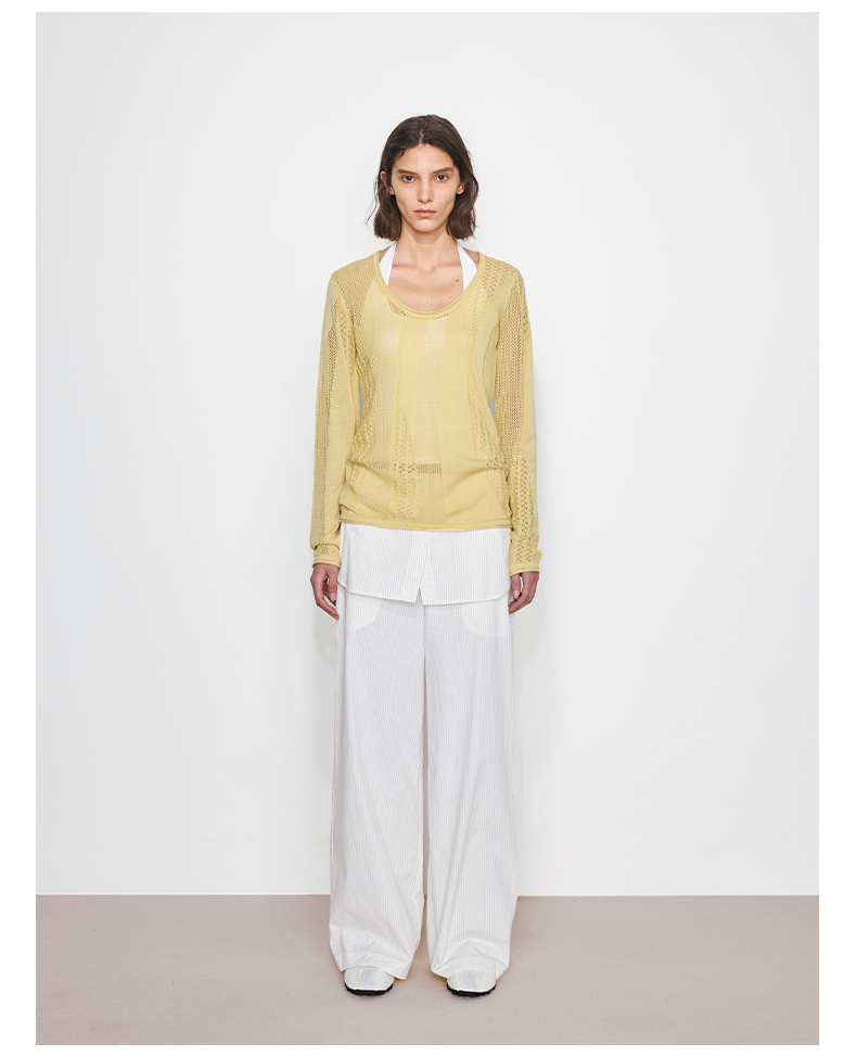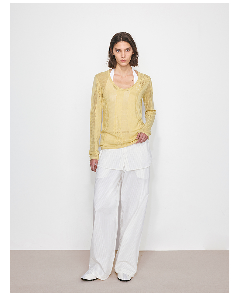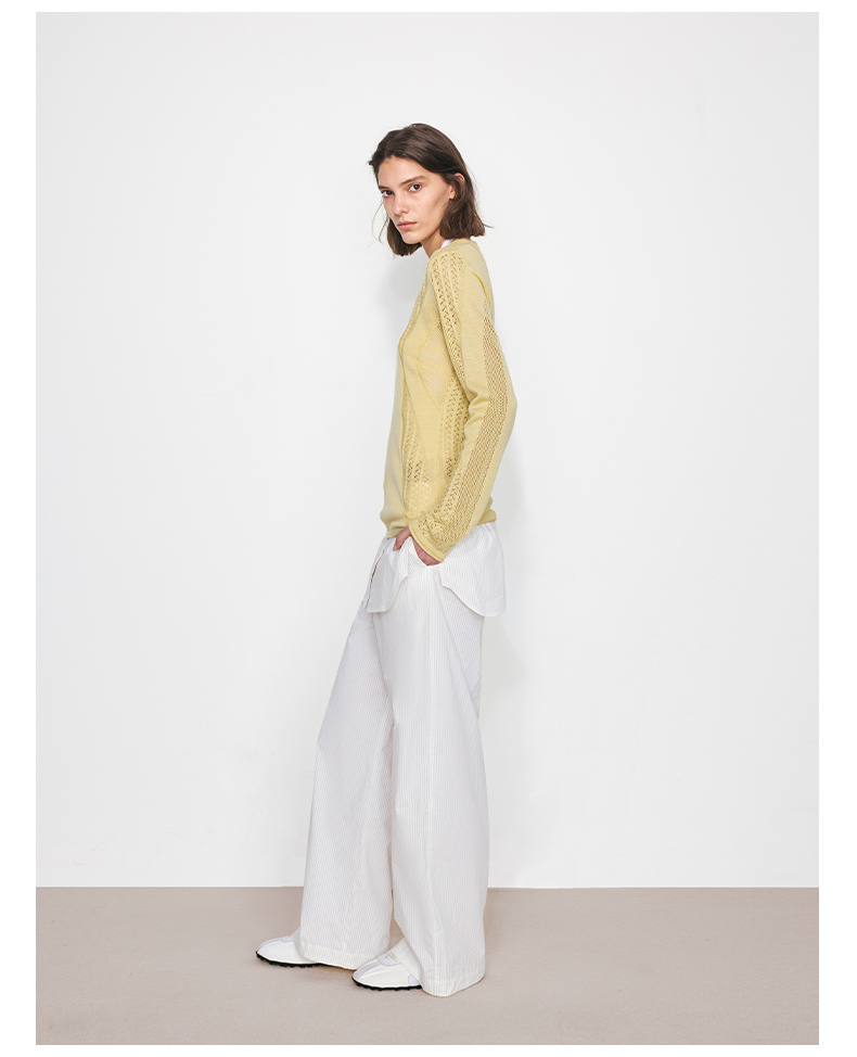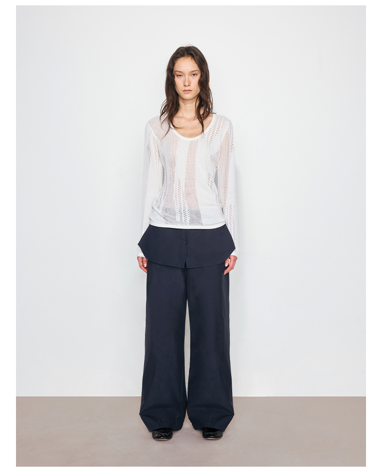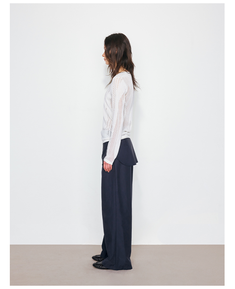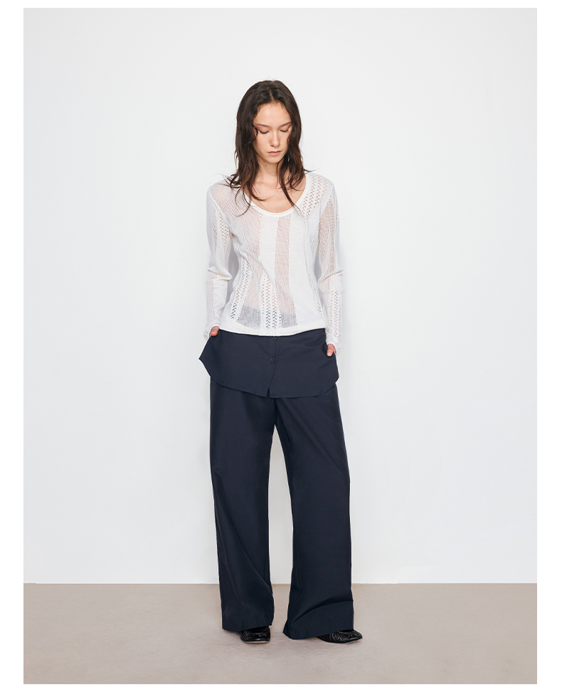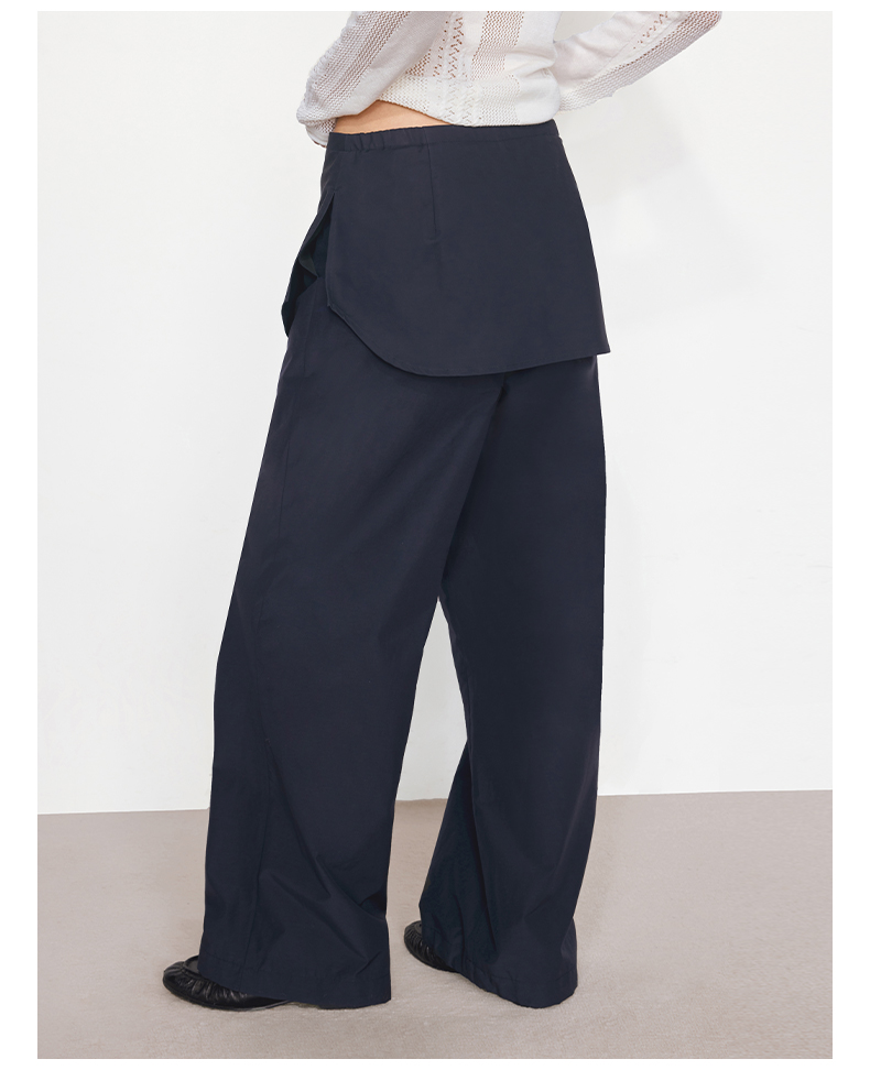 NUTH“衬衫摆”拼接假两件可束脚裙裤女 深藏青色/白灰条纹色(发货/预售时间同步天猫)