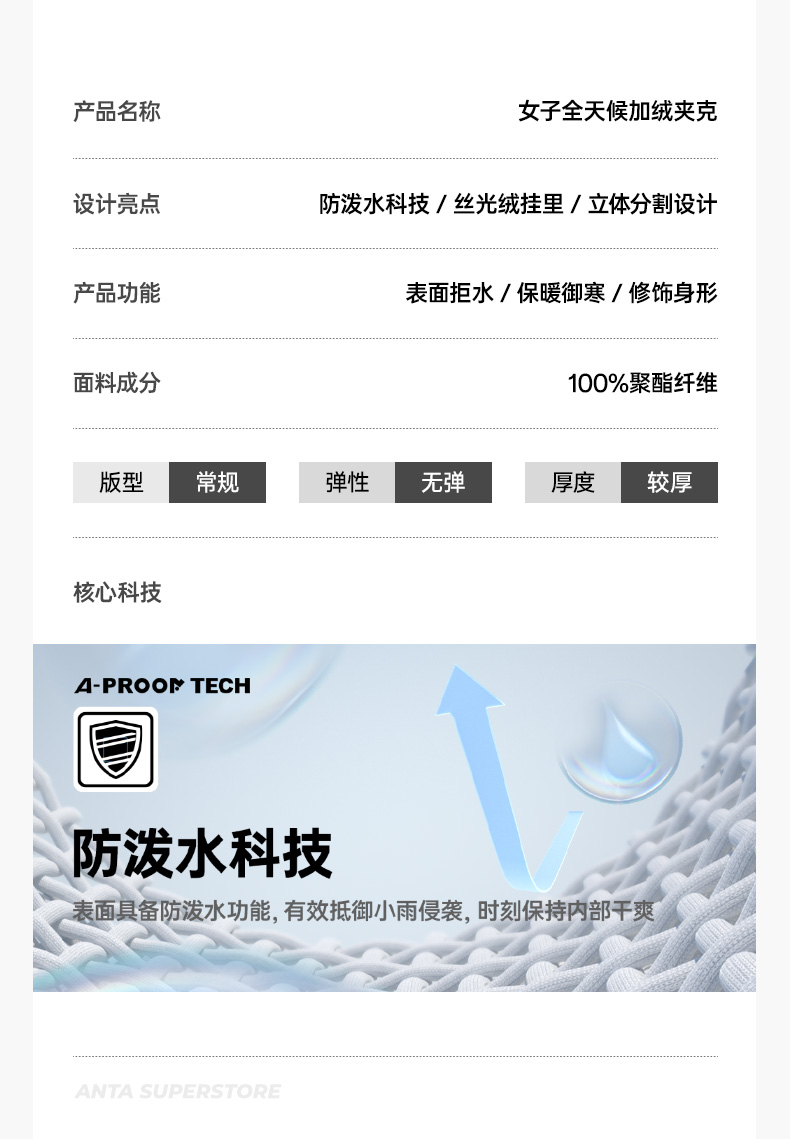超级安踏加绒运动外套女士秋冬防泼水全天候训练防风夹克外套162547603U