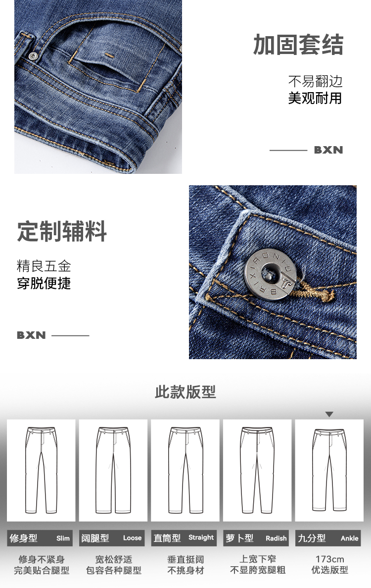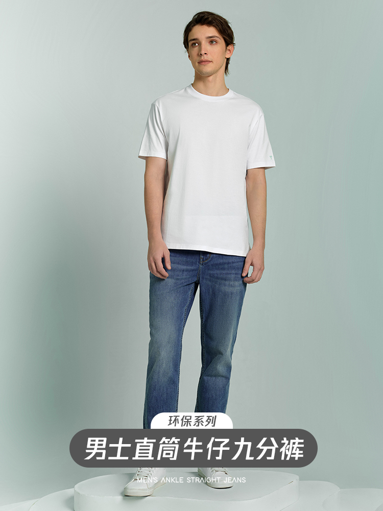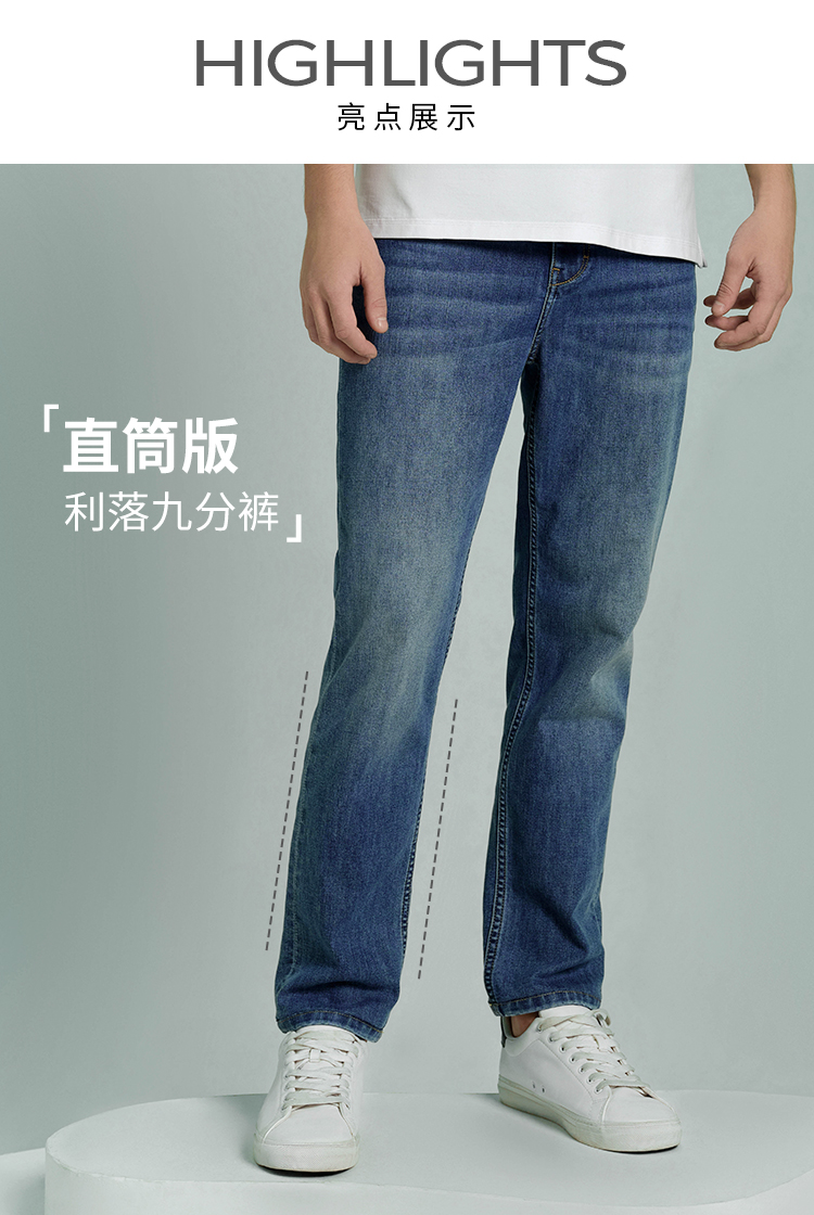 拇指白小牛男士直筒牛仔九分裤无限系列