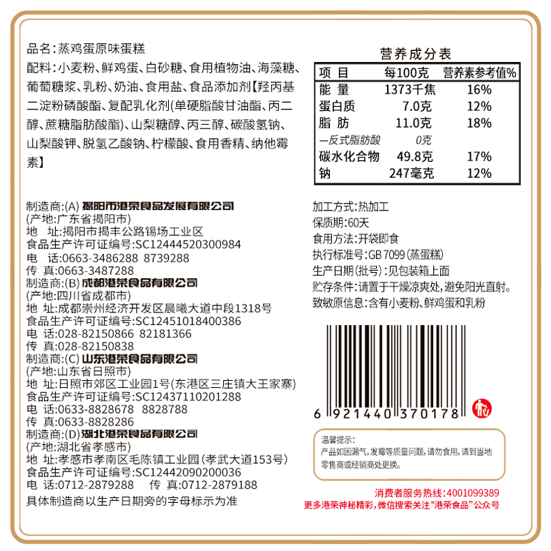 港荣蒸蛋糕 鸡蛋原味蒸蛋糕480g/箱面包蛋糕早餐休闲零食戚风蛋糕面包