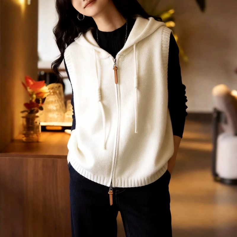 穿搭法宝~100%纯山羊绒双拉链连帽开衫女针织坎肩外套CYR260302