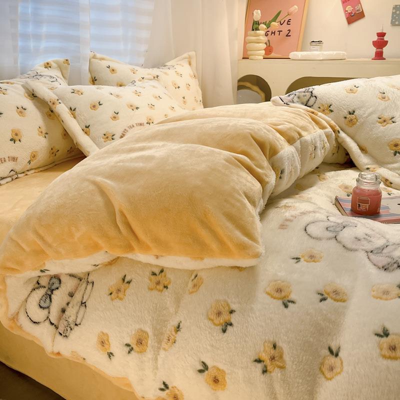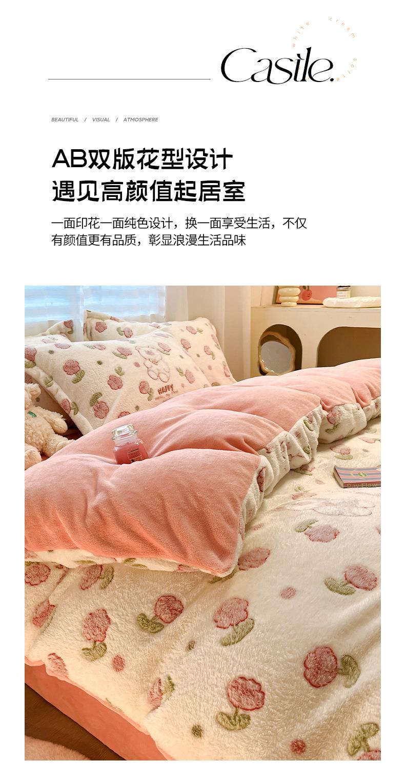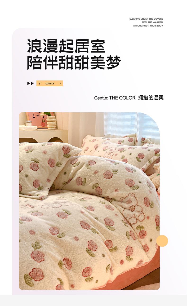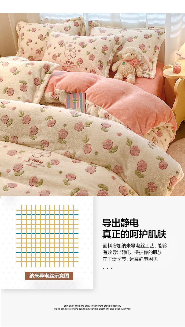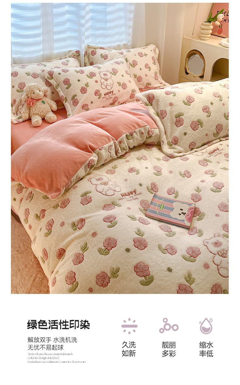 【加厚雪花绒牛奶绒四件套】床品保暖冬季加绒被套法兰绒床单三件套