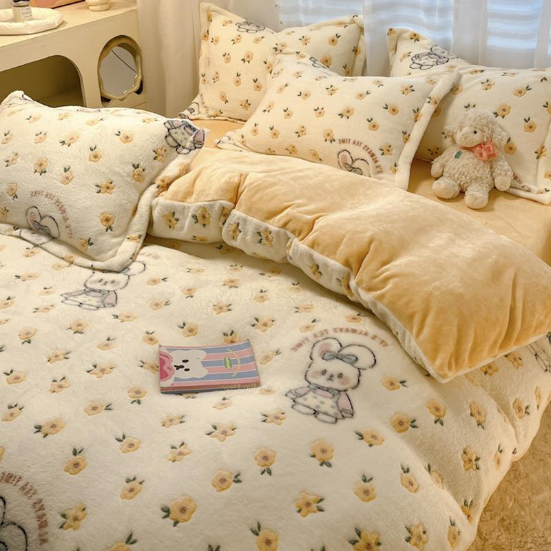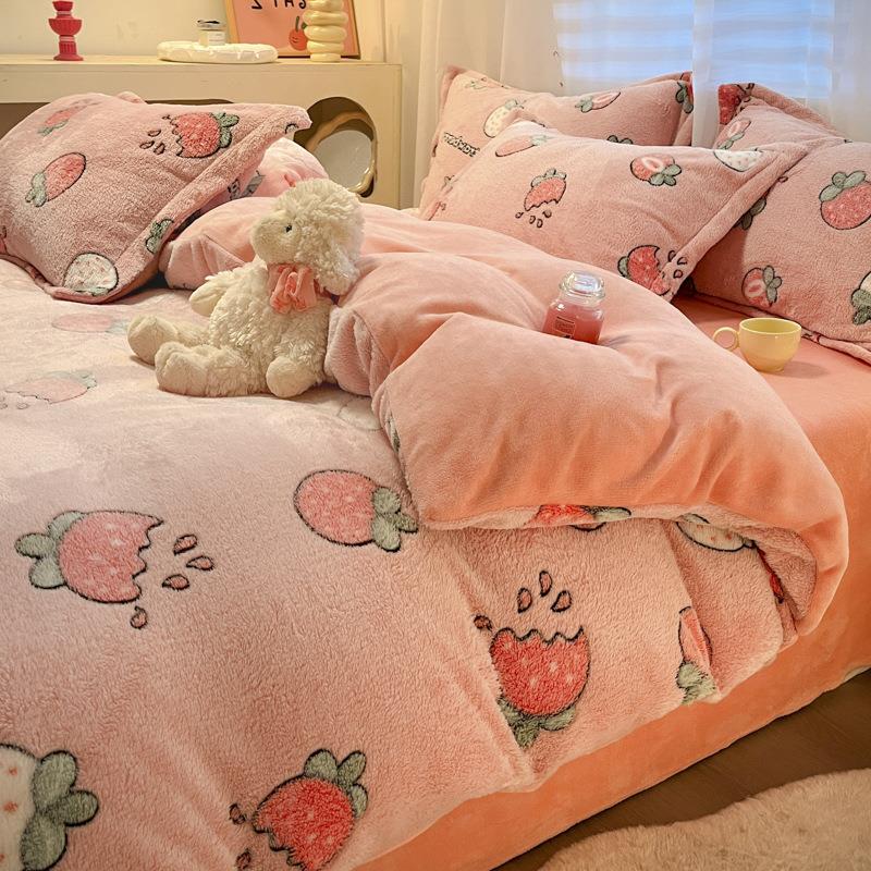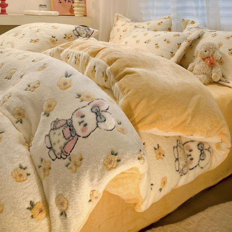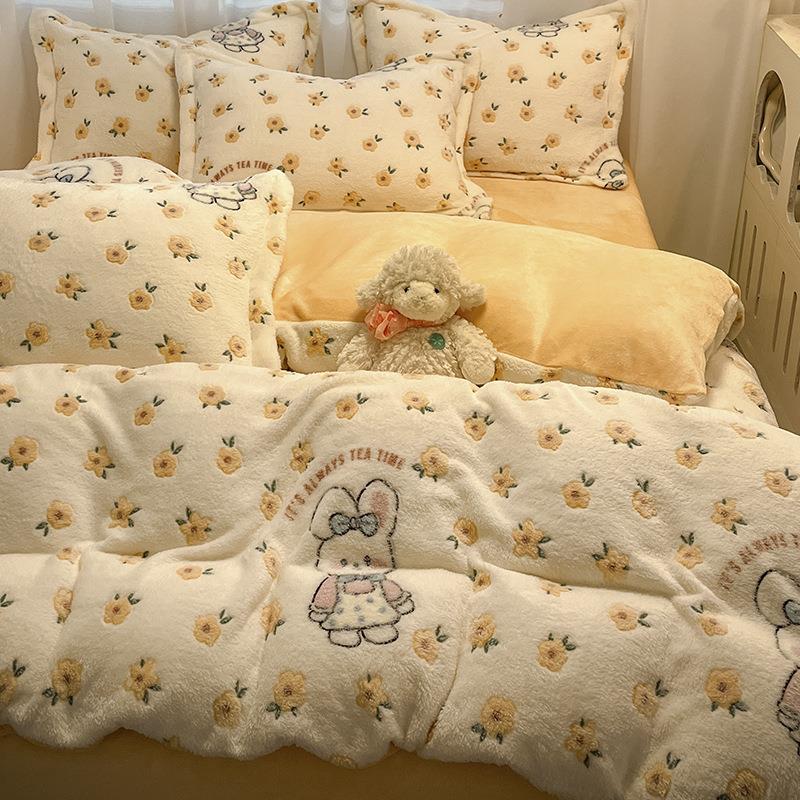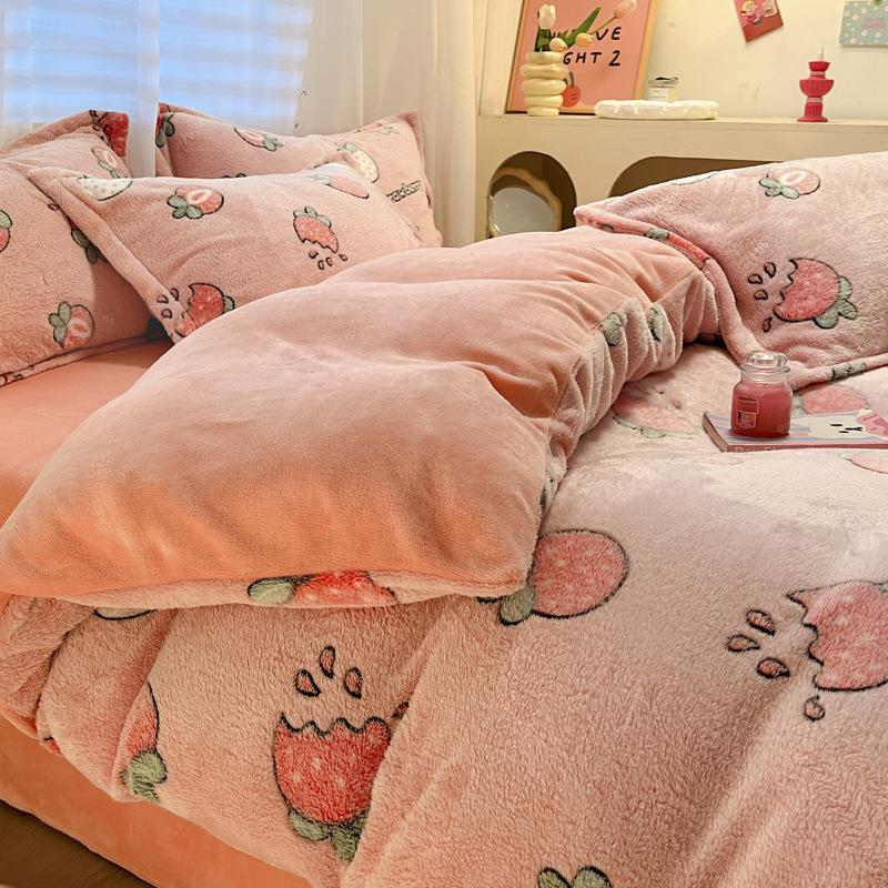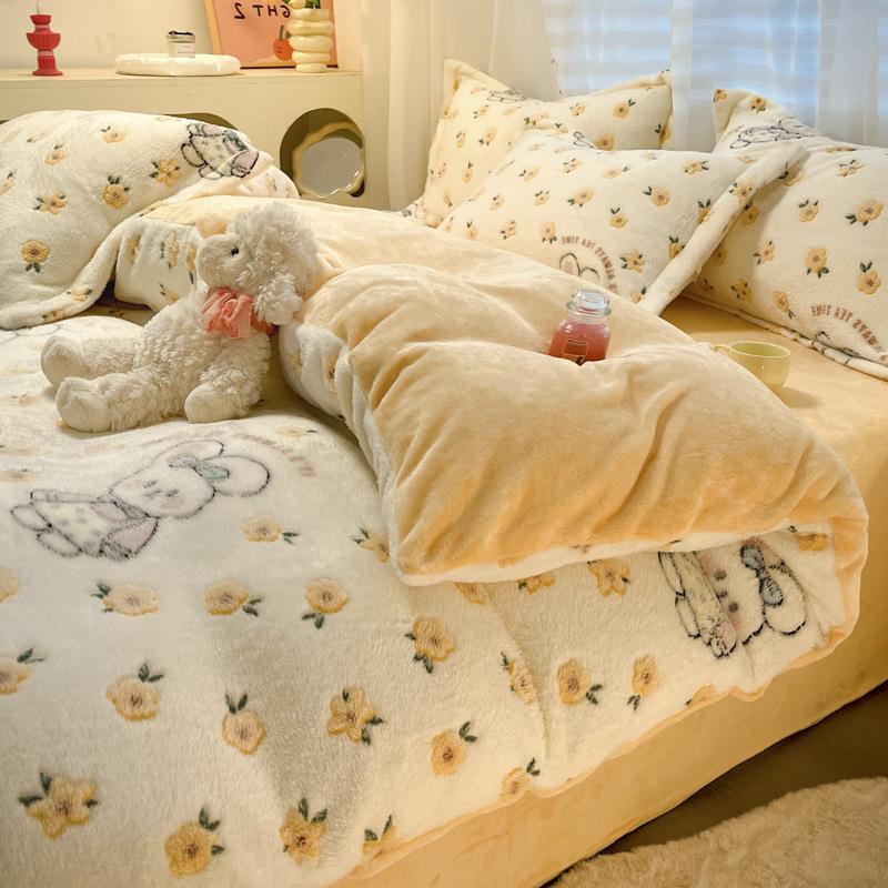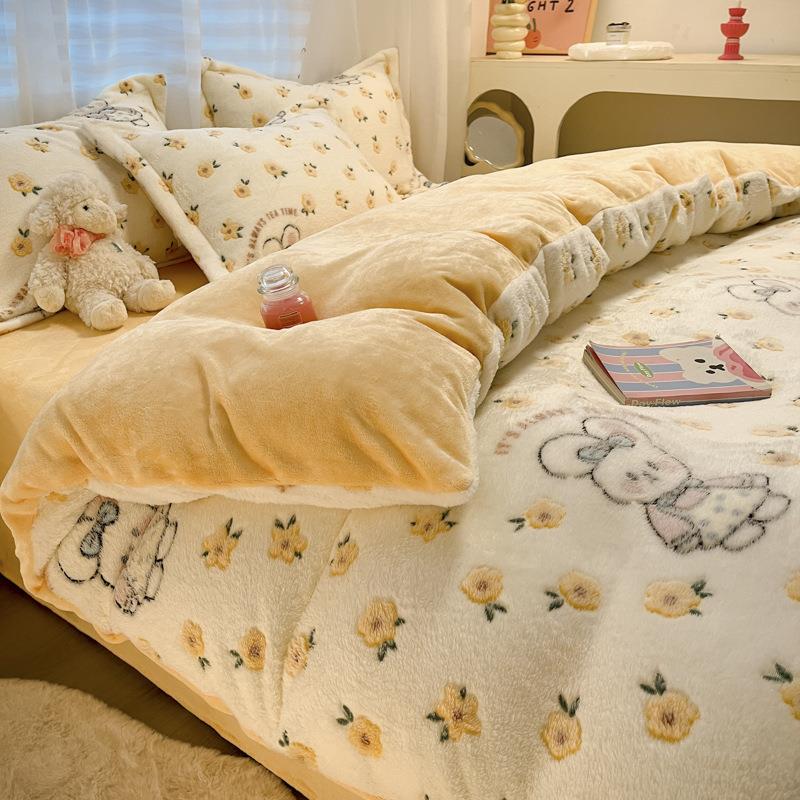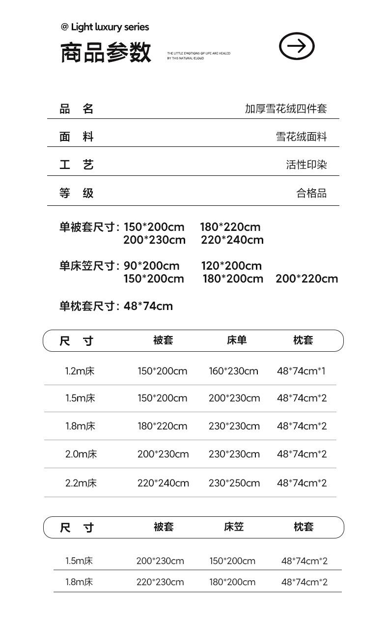 【加厚雪花绒牛奶绒四件套】床品保暖冬季加绒被套法兰绒床单三件套