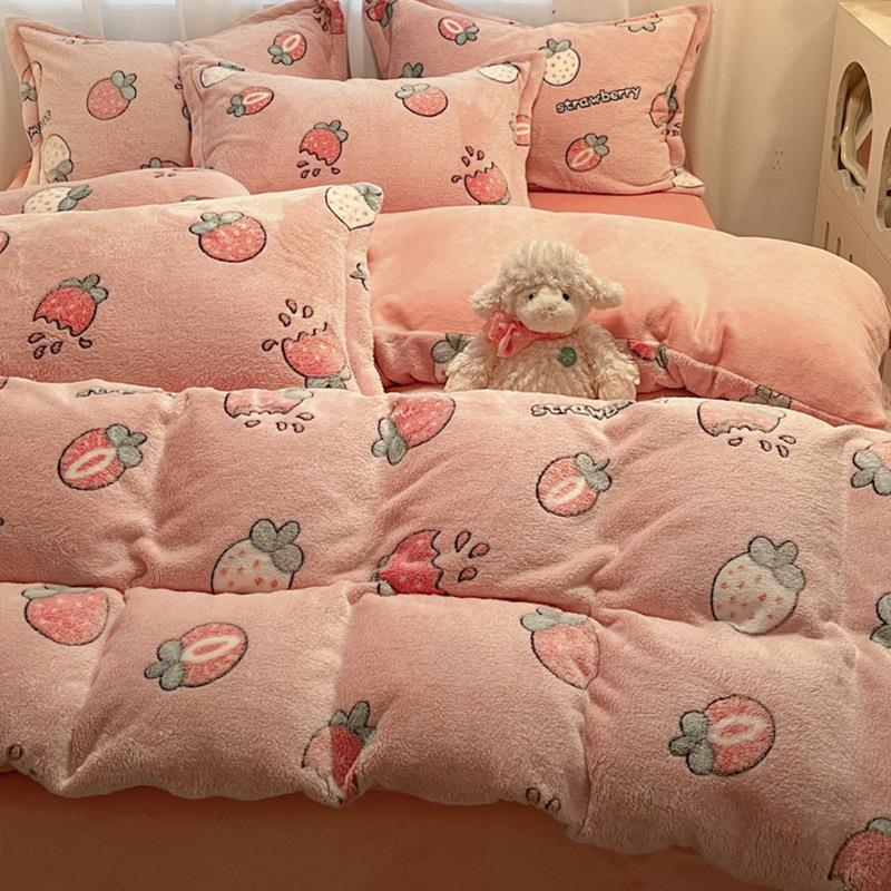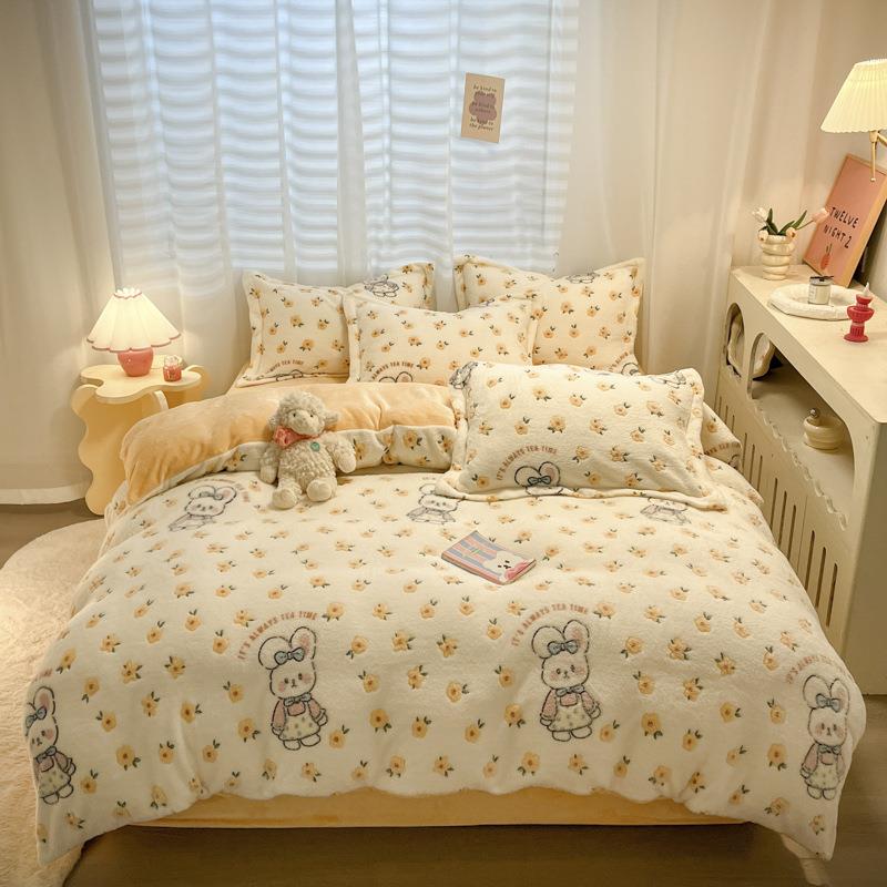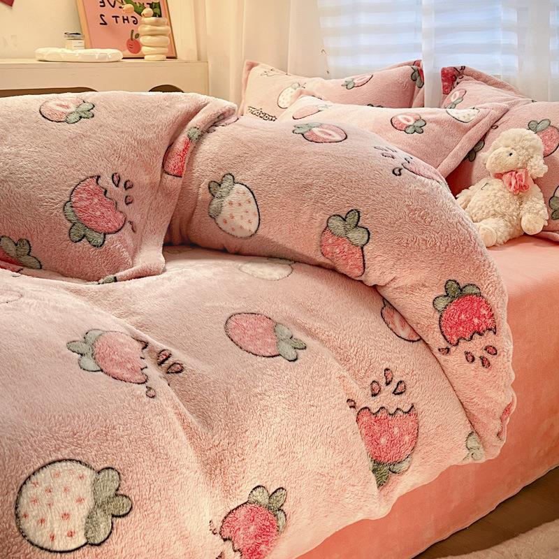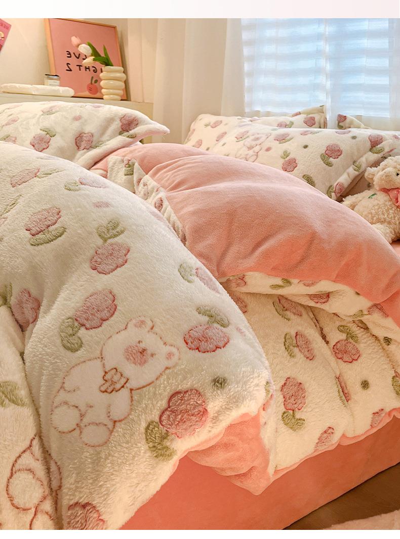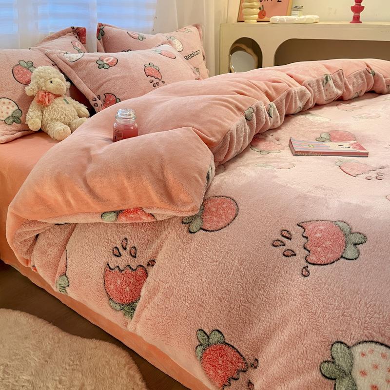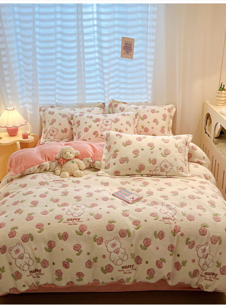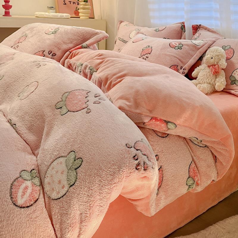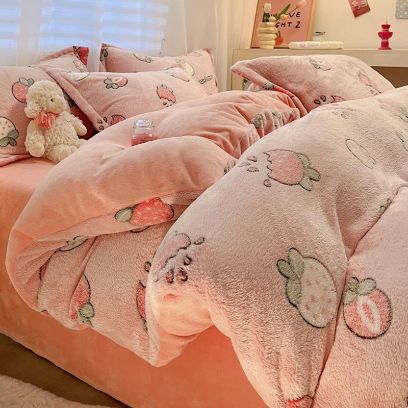 【加厚雪花绒牛奶绒四件套】床品保暖冬季加绒被套法兰绒床单三件套