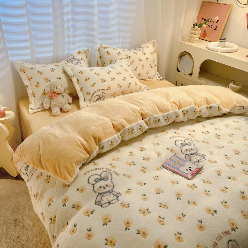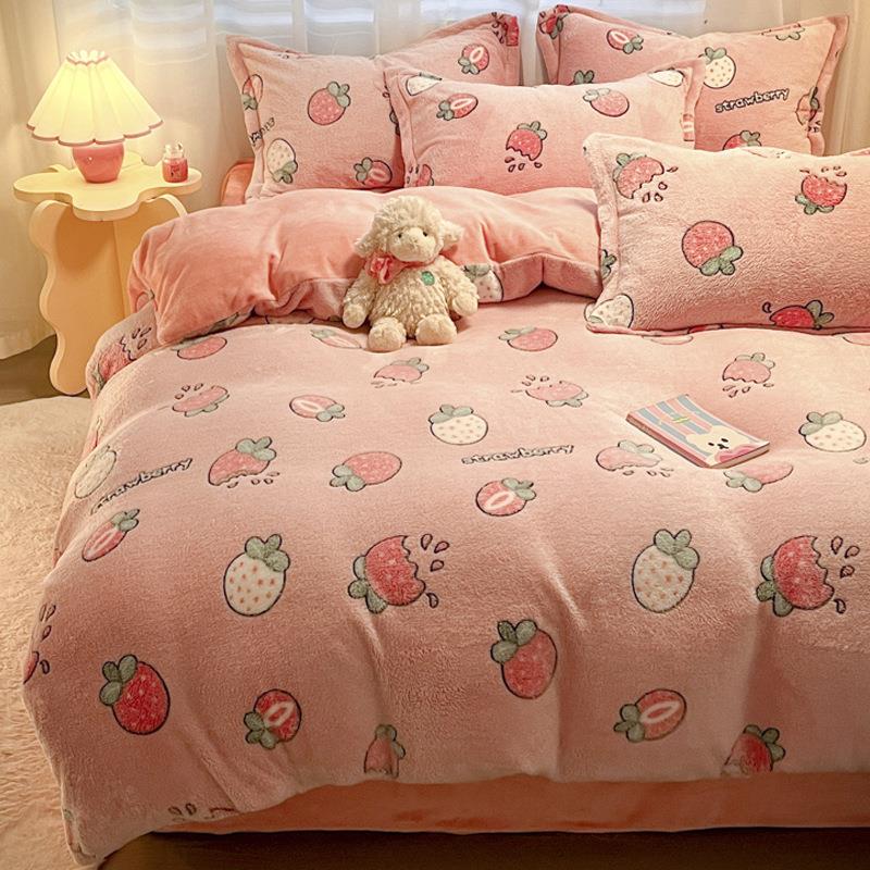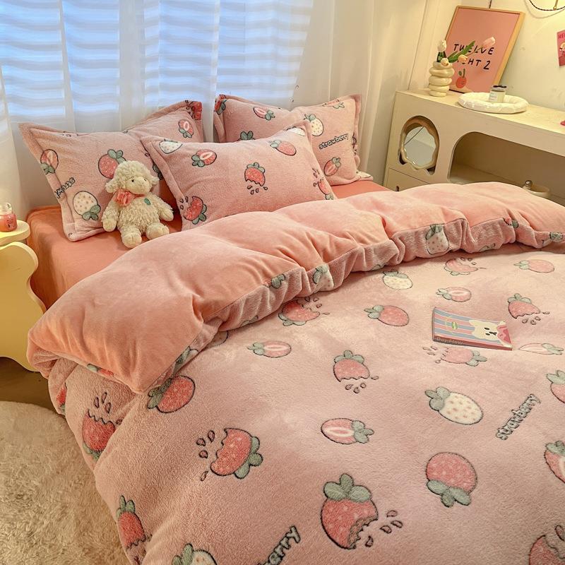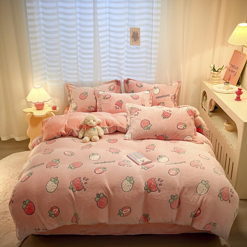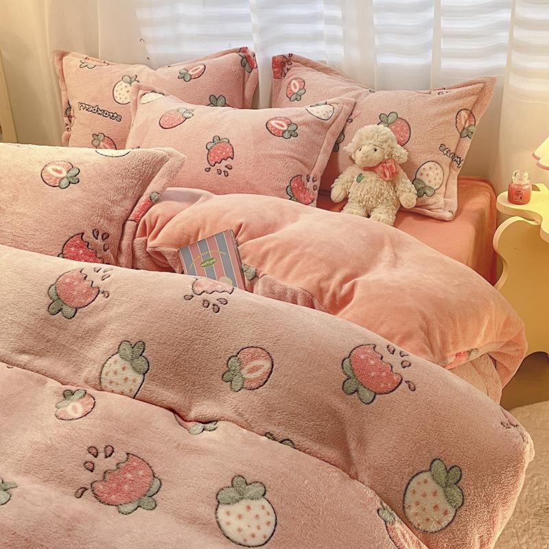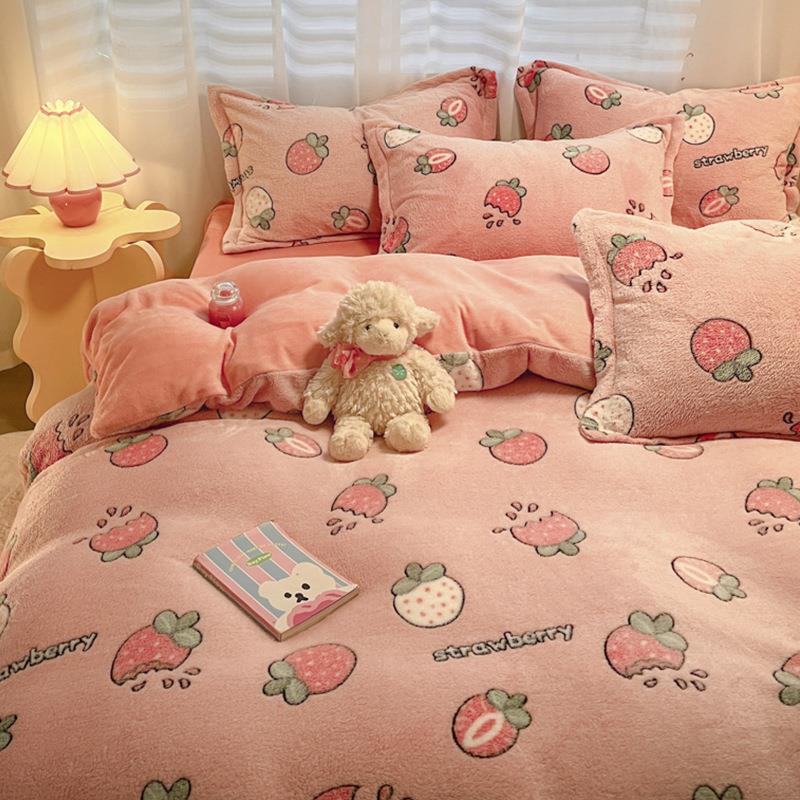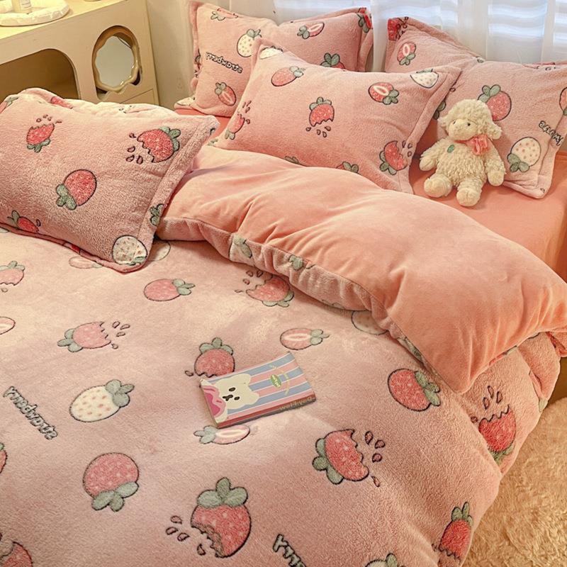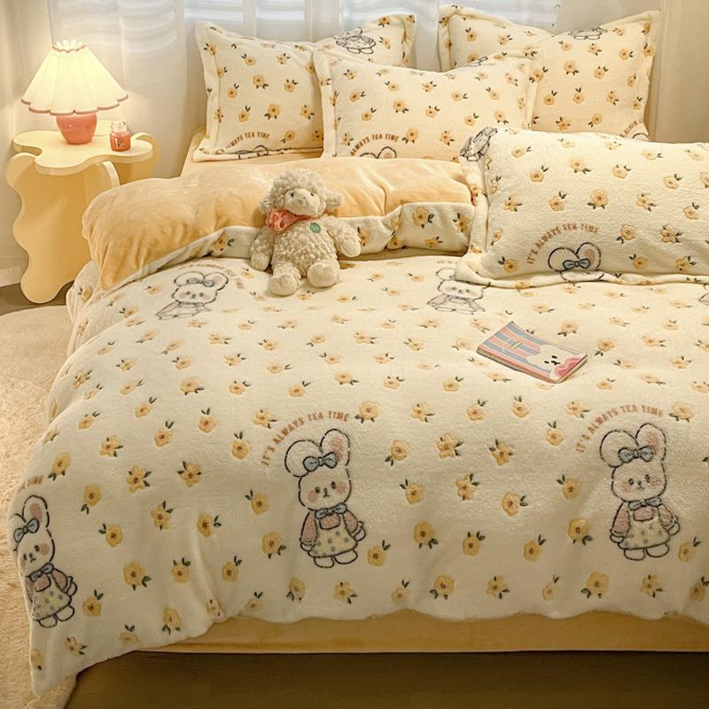 【加厚雪花绒牛奶绒四件套】床品保暖冬季加绒被套法兰绒床单三件套
