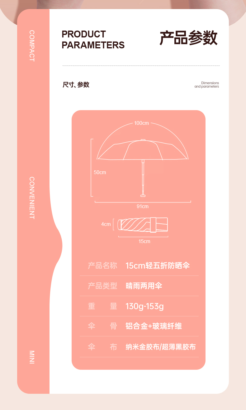 雨水也无法渗透到雨伞内部破坏防晒涂层