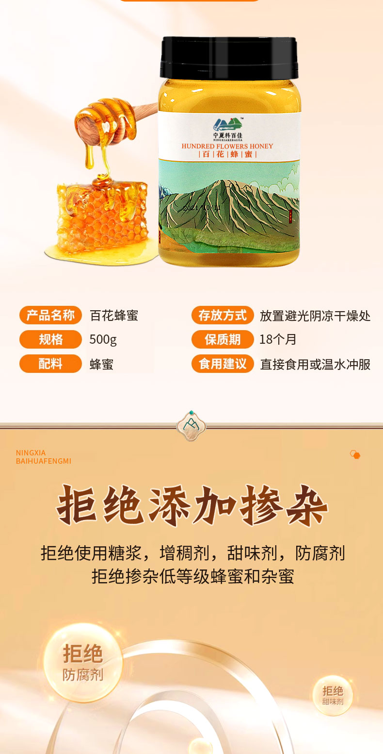 科百佳百花蜂蜜500g(KBJ)(仅限福建省内配送,满400元包邮)