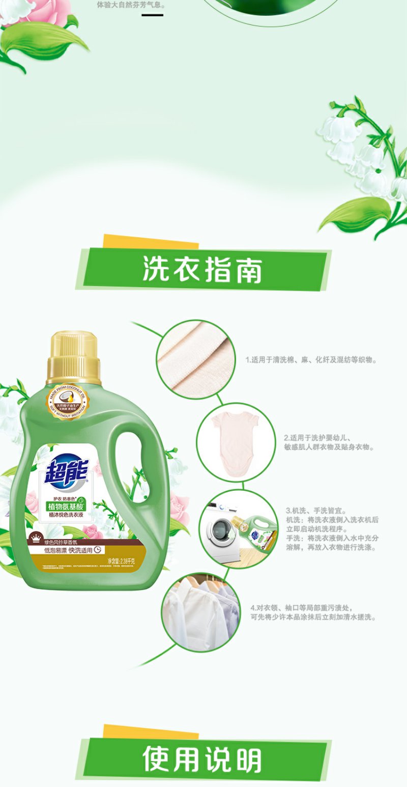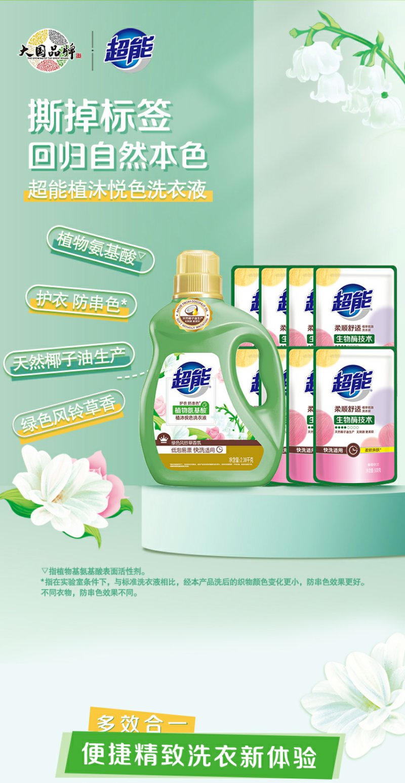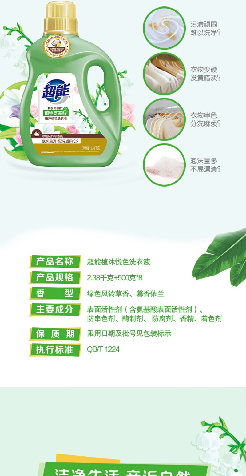 超能 植沐悦色洗衣液2.38kg+柔顺舒适洗衣液(补充装)500g*8袋