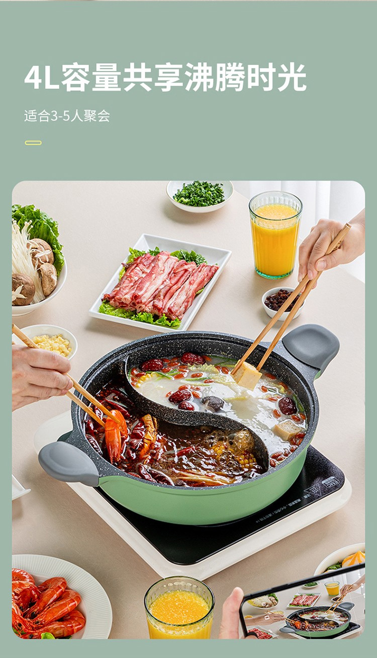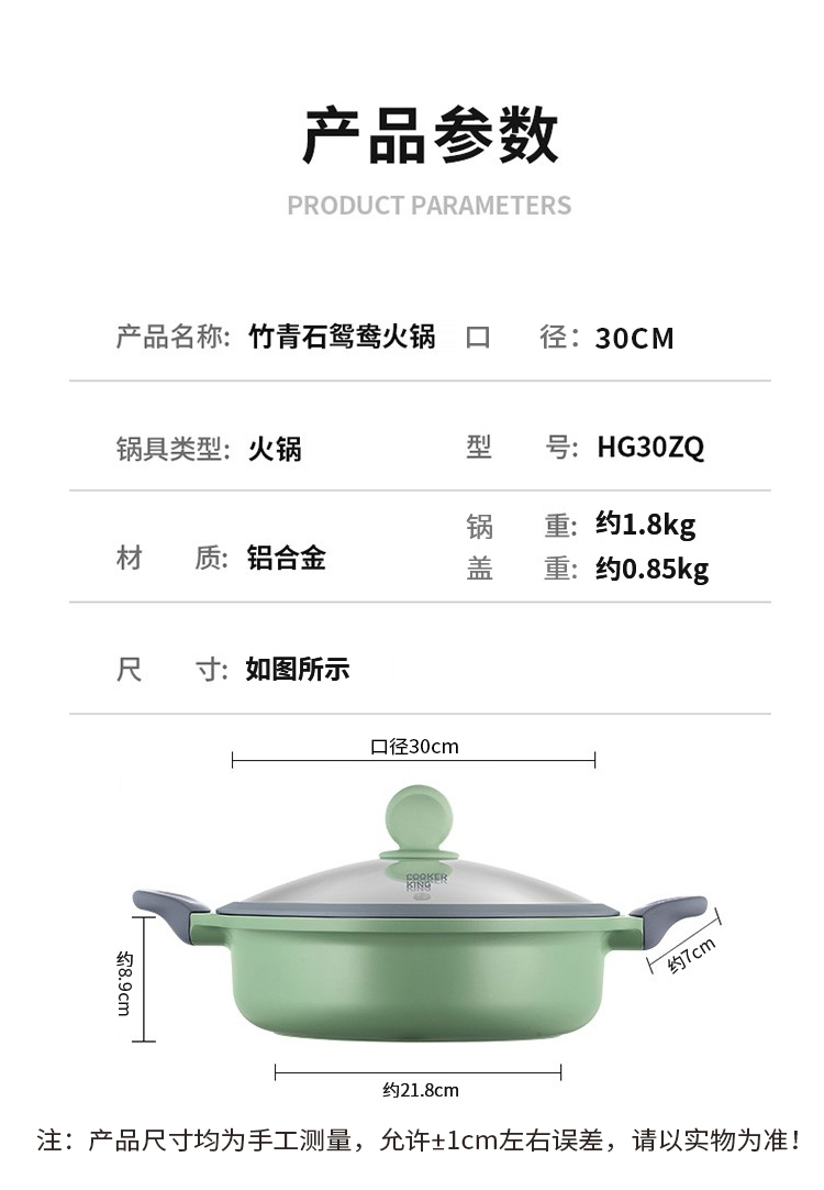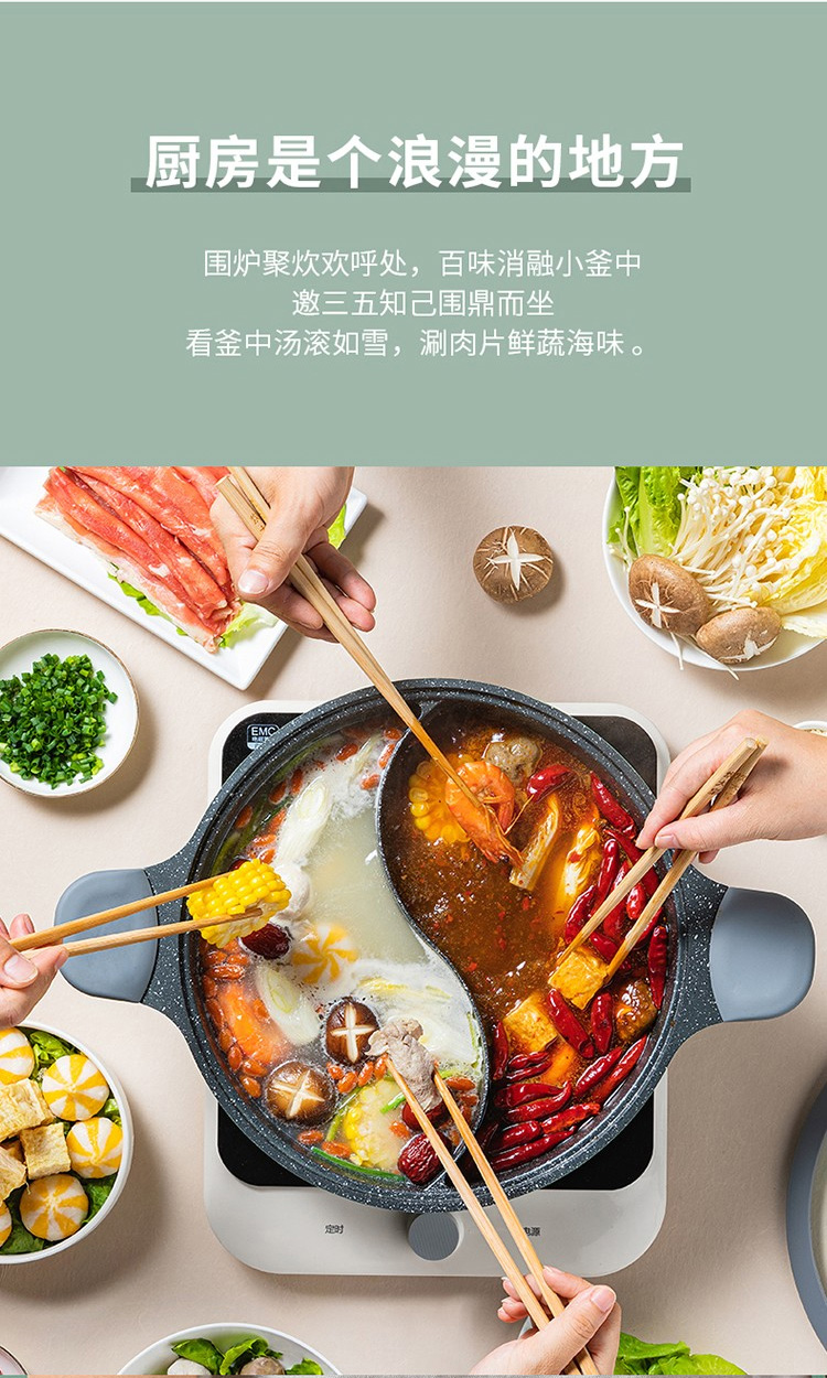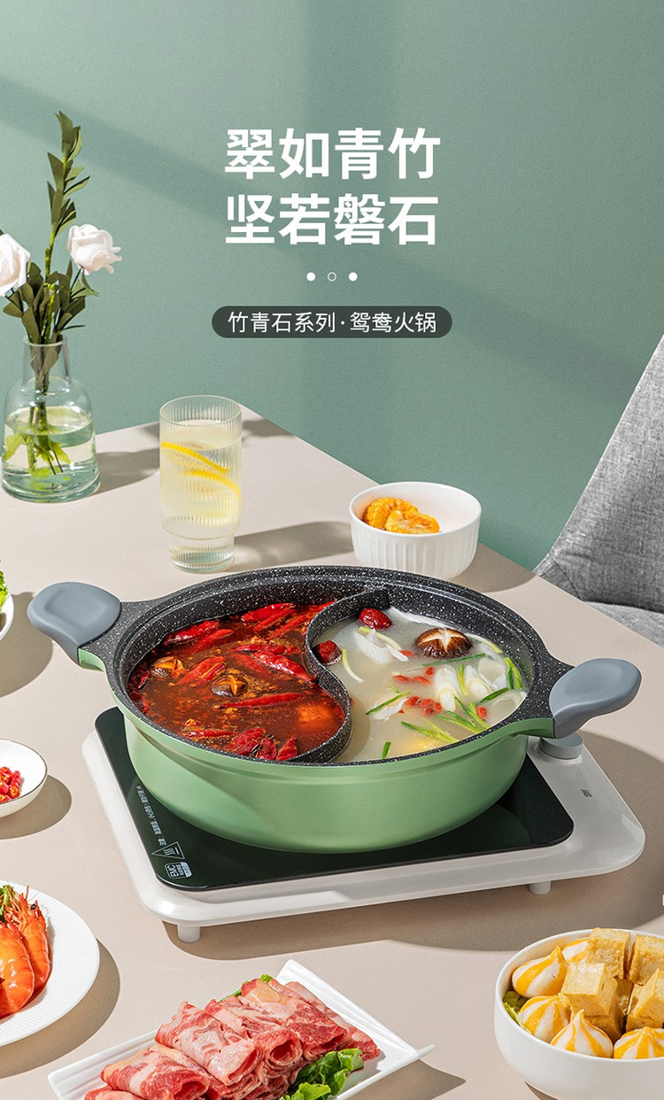 炊大皇 竹青石鸳鸯火锅30cm HG30ZQ