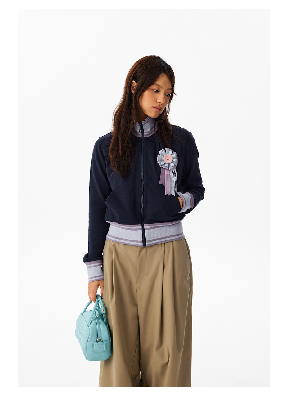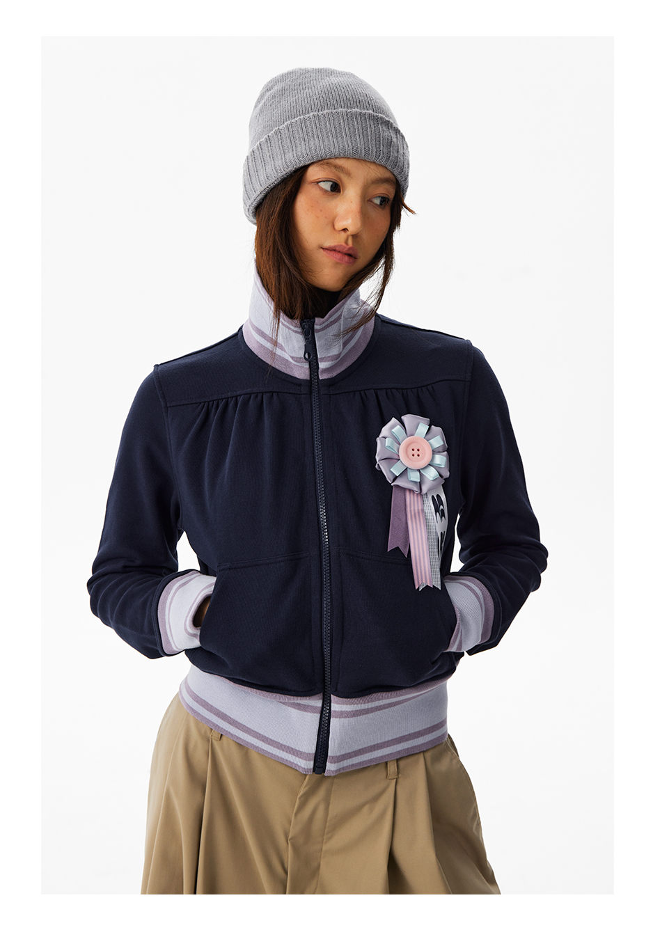CryingCenter 修身休闲短款打褶 毛圈卫衣外套 哭喊中心