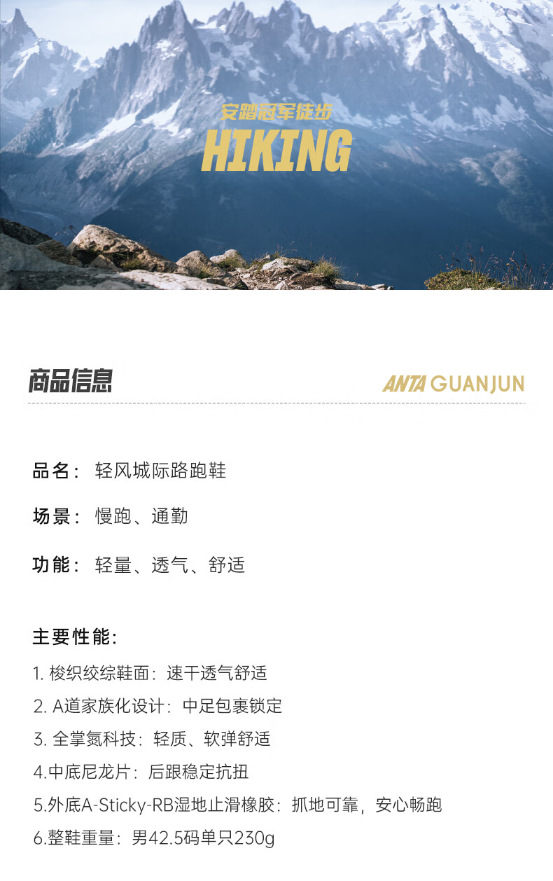 安踏冠军轻风 城际路跑鞋男子缓震轻便回弹跑步鞋子112525532A
