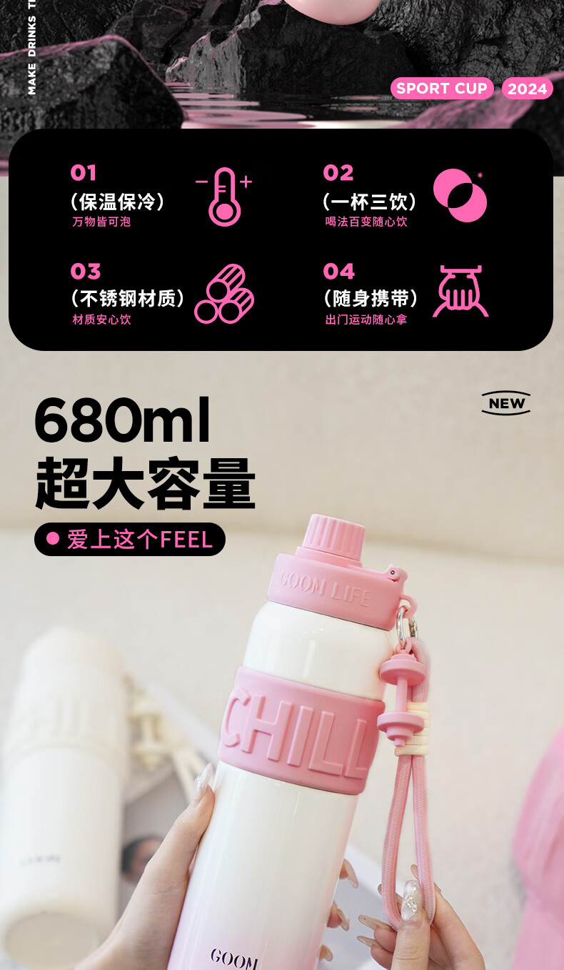 GOOM 格沫轻运动系列保温壶680ml GM-24AW-B12