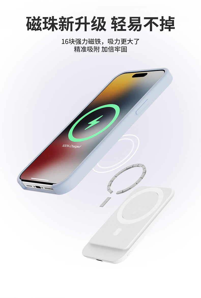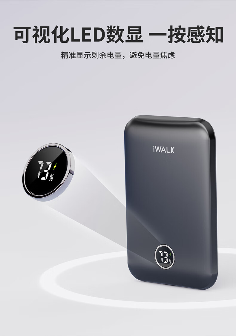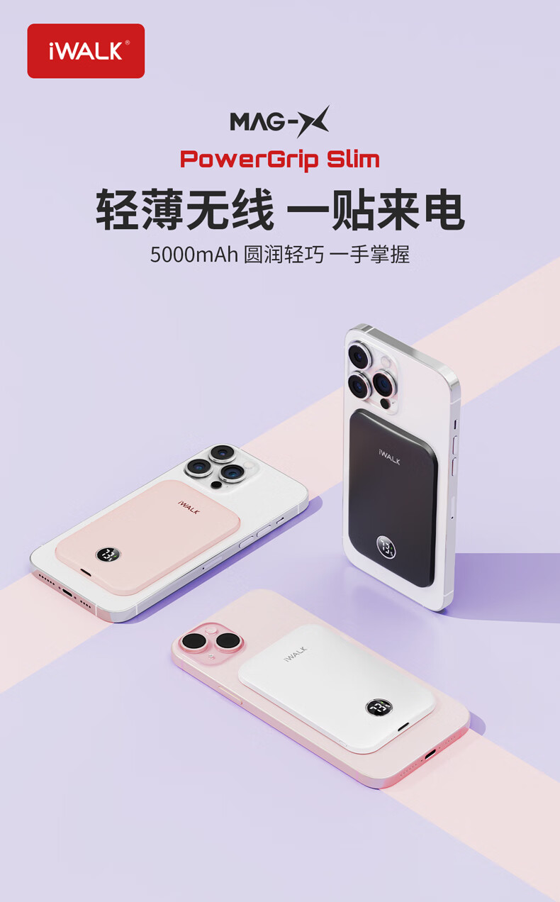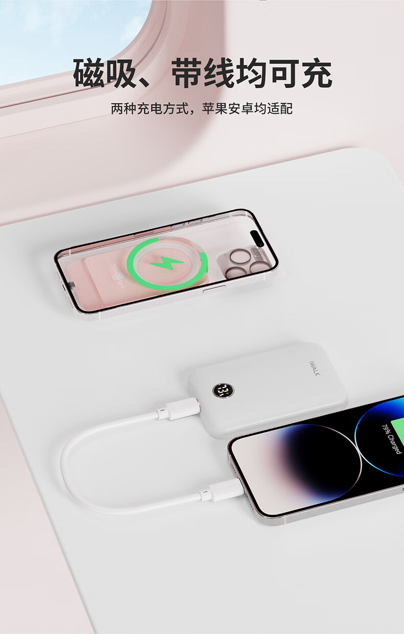 【国家3C认证】爱沃可(iWALK)MXB008超薄磁吸充电宝5000毫安迷你便携可爱magsafe快充移动电源可上飞机适用苹果15/14/13 白