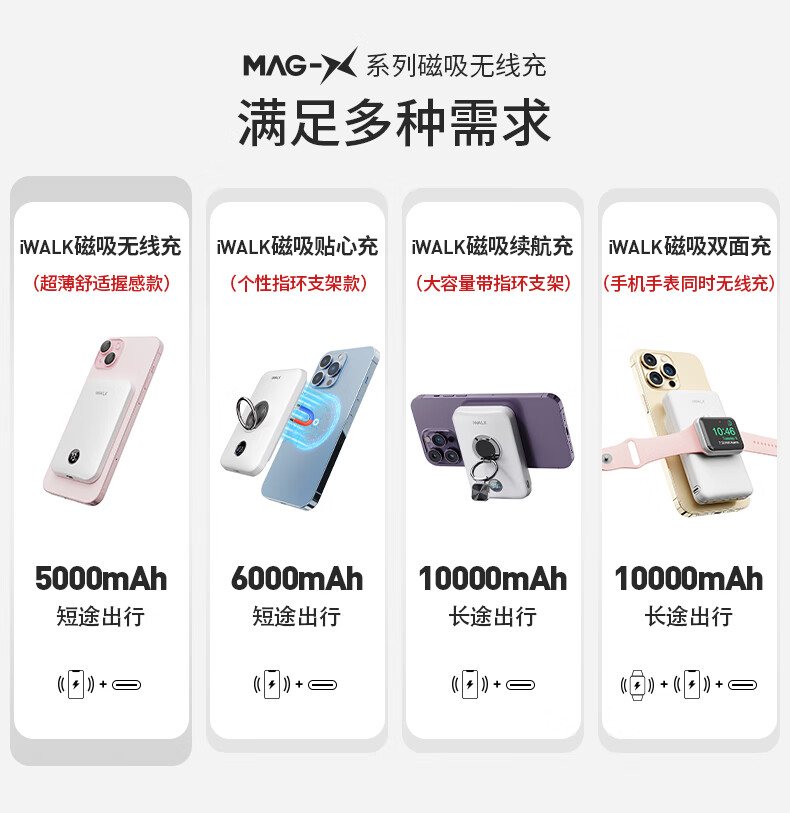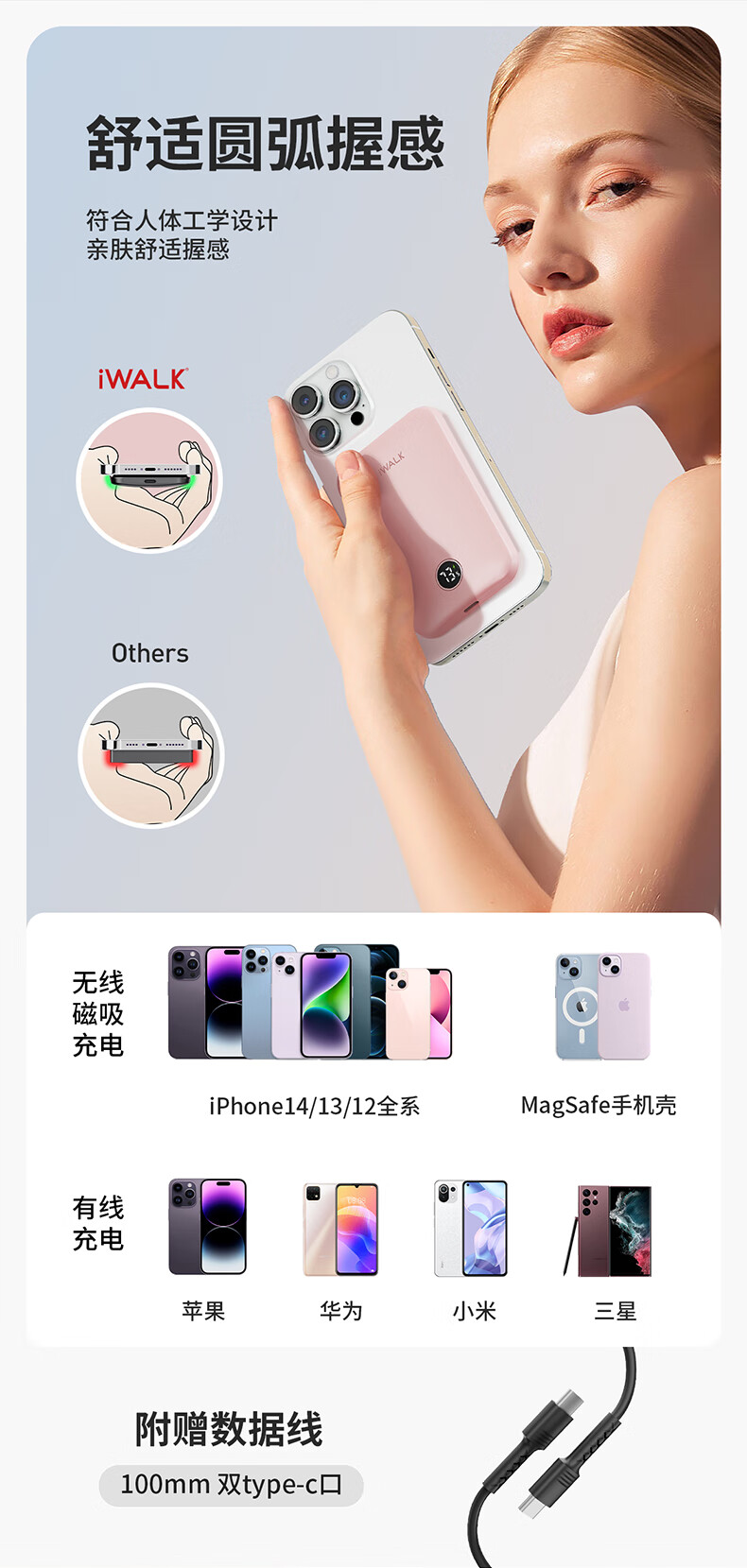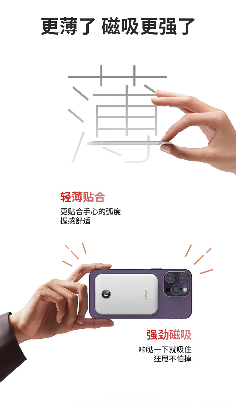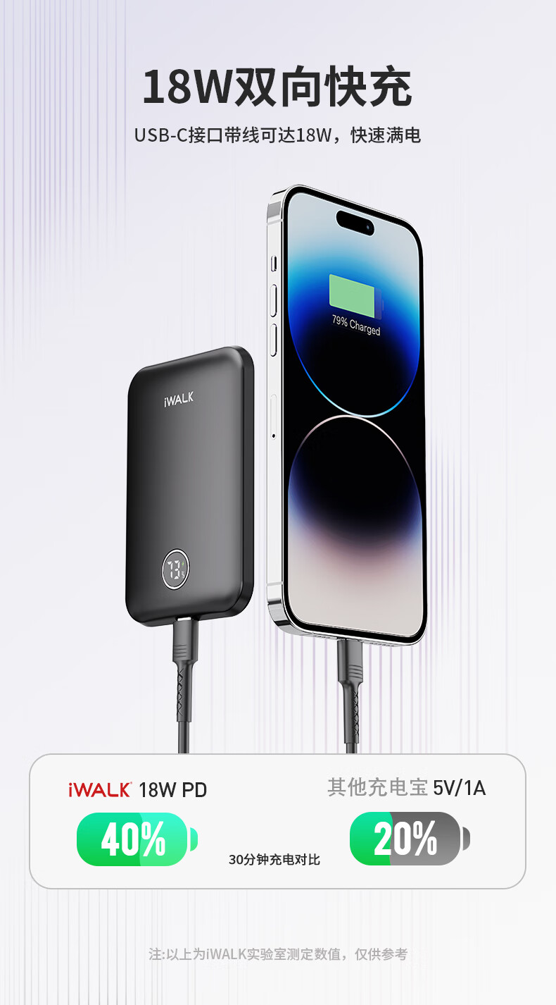 【国家3C认证】爱沃可(iWALK)MXB008超薄磁吸充电宝5000毫安迷你便携可爱magsafe快充移动电源可上飞机适用苹果15/14/13 白