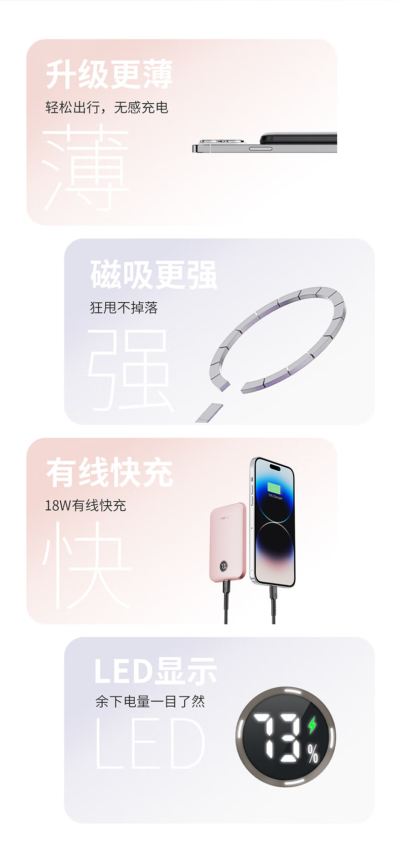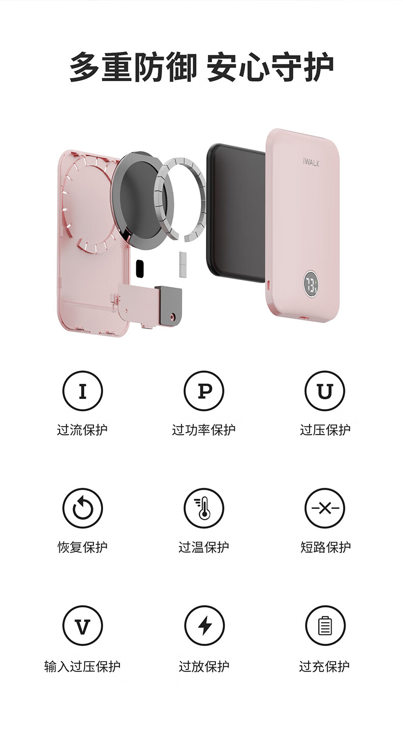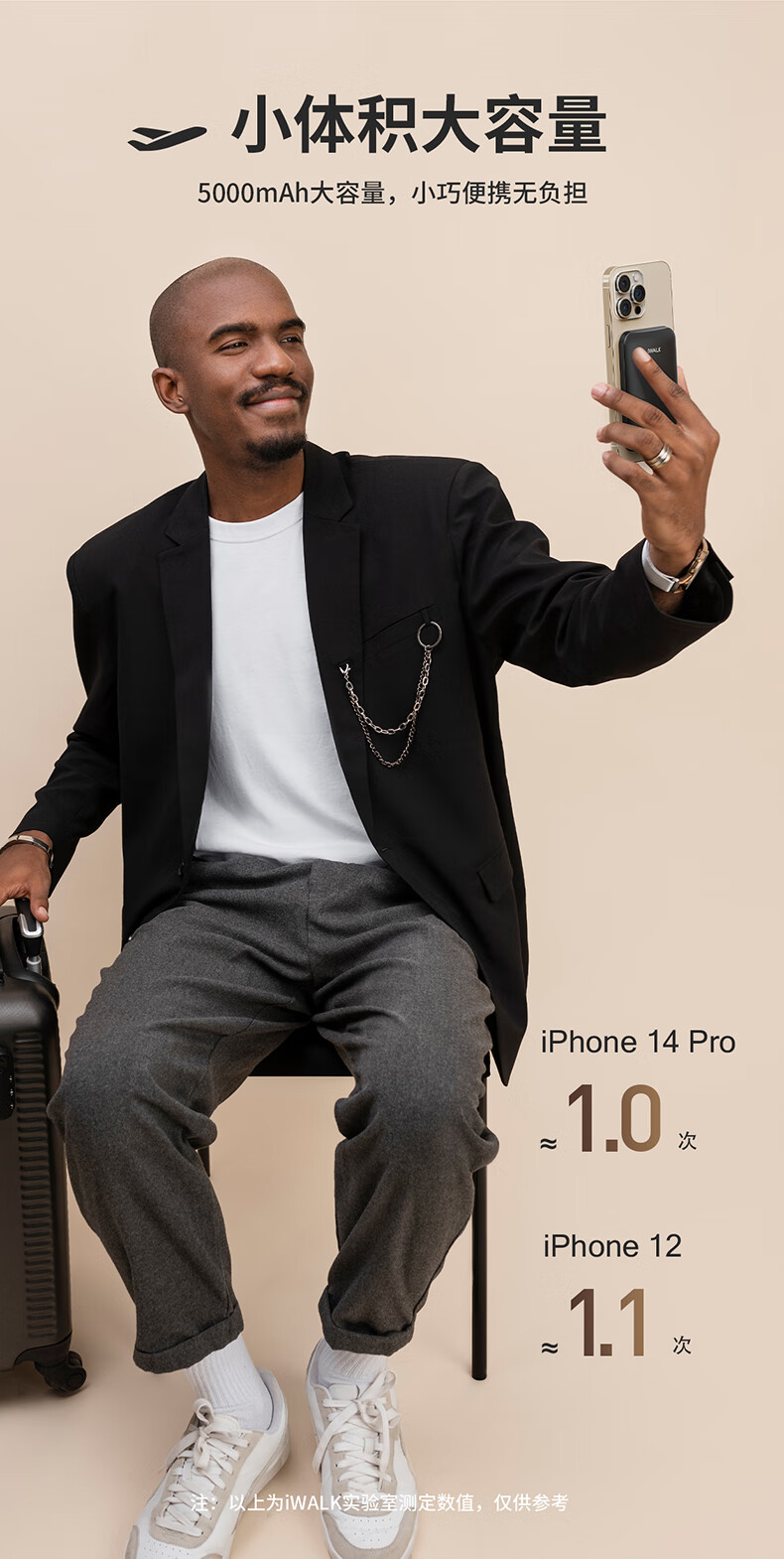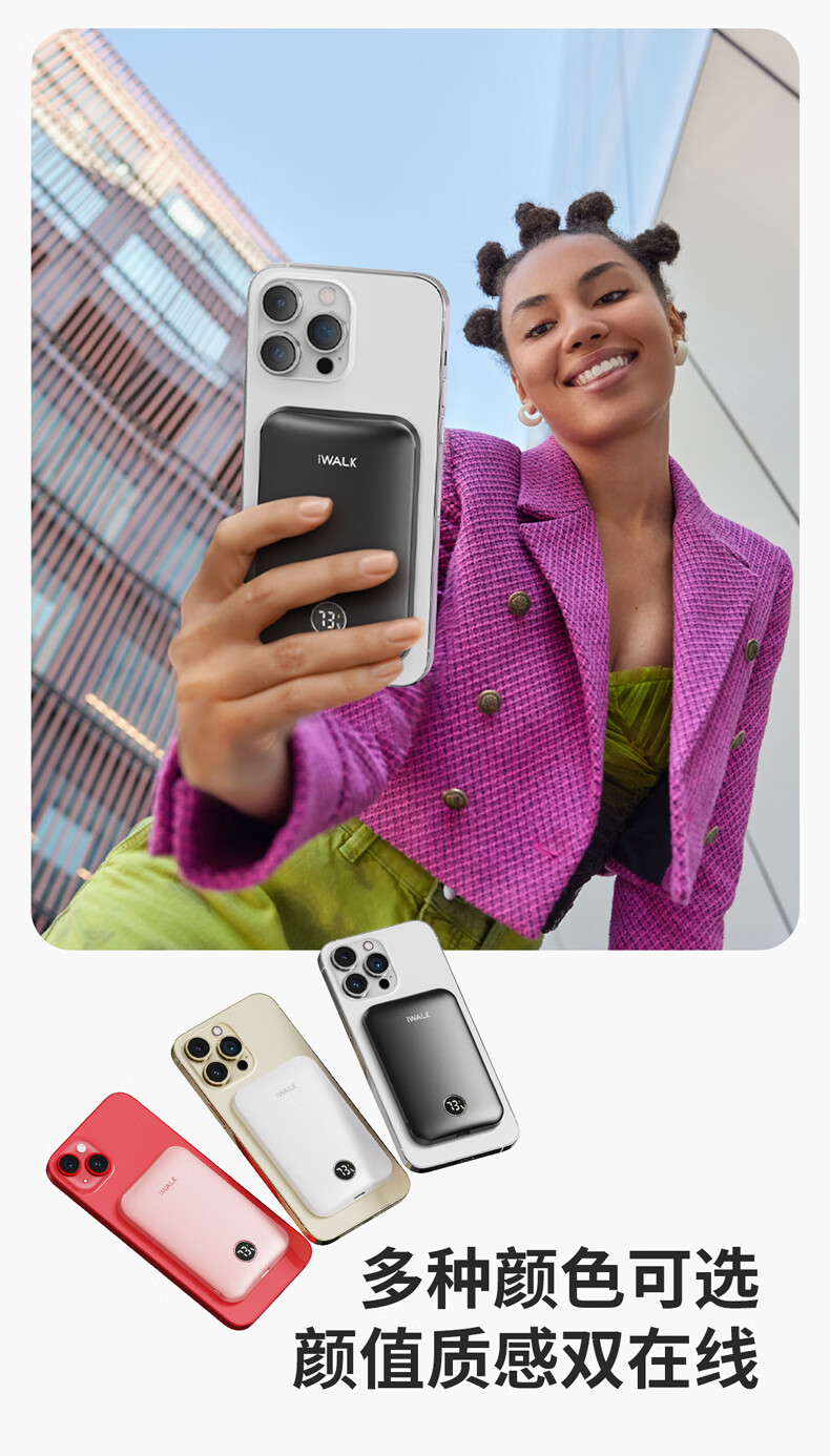 【国家3C认证】爱沃可(iWALK)MXB008超薄磁吸充电宝5000毫安迷你便携可爱magsafe快充移动电源可上飞机适用苹果15/14/13 白