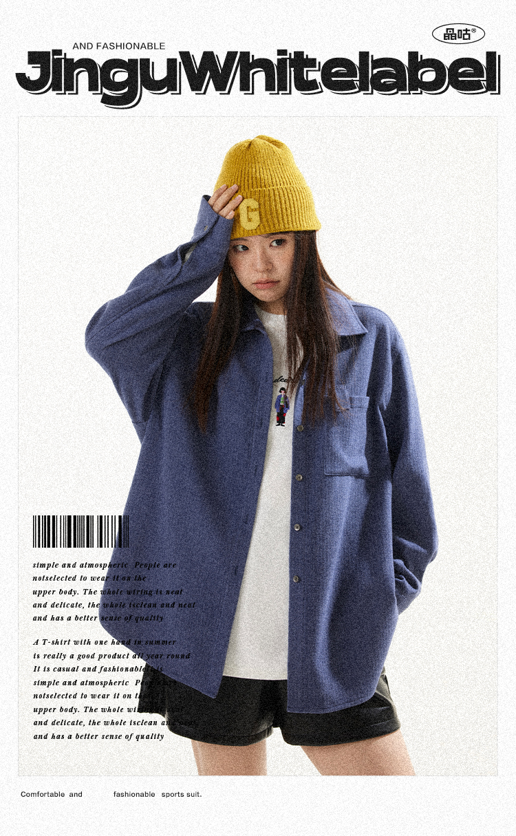 2024新品~白标家微胖定制胸前口袋加厚翻领衬衫外套女冬季大码上衣