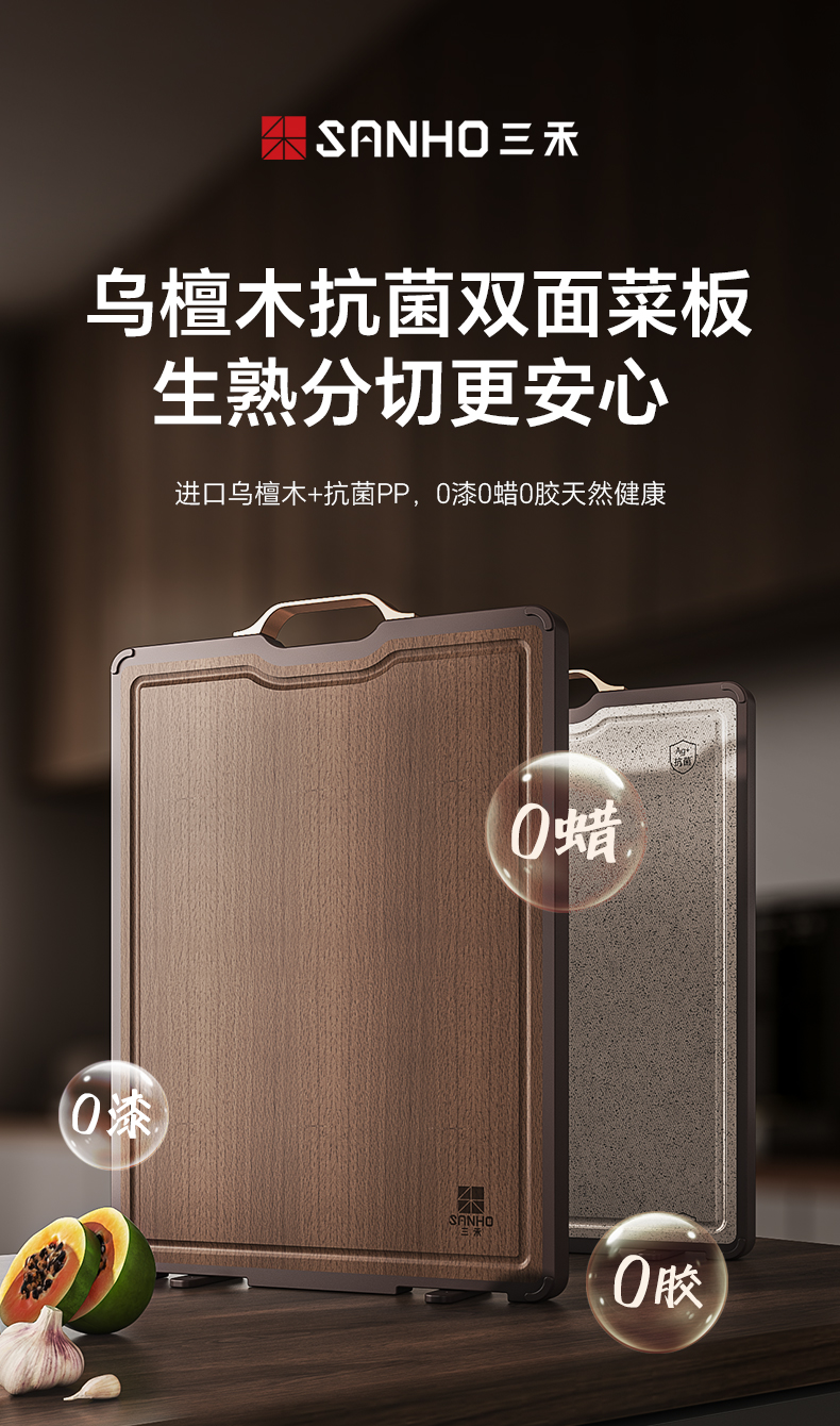 优选丨三禾乌檀木pp家用双面菜板抗菌防裂加厚厨房切菜板