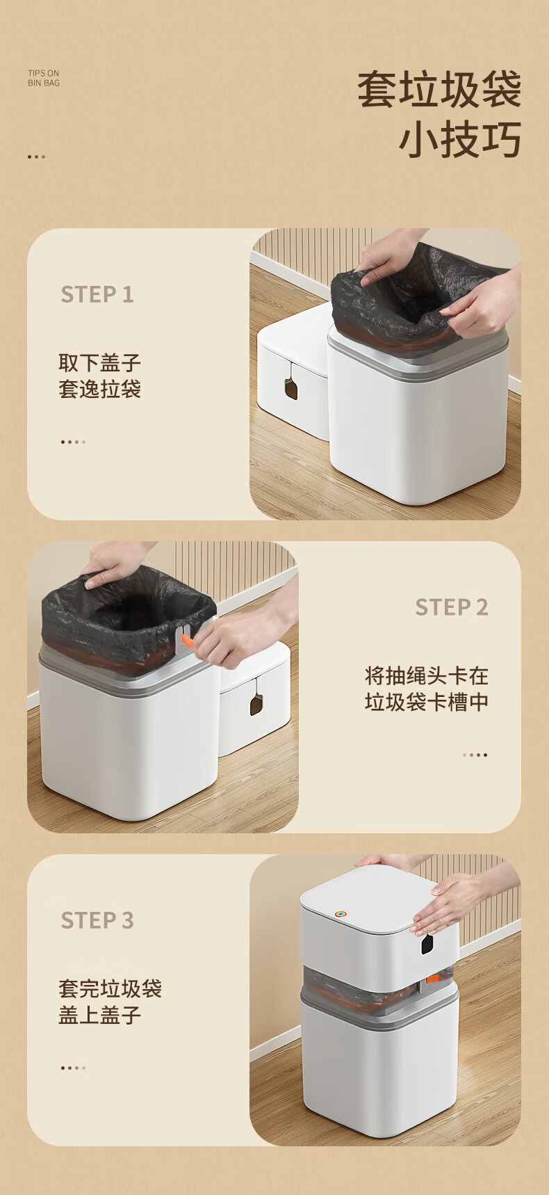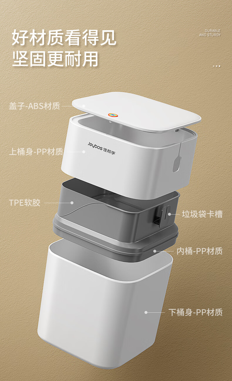 佳帮手 智能垃圾桶 将军肚方形大盖逸拉垃圾桶-佳灰JBS-YLLJT-ZFY39-JGY