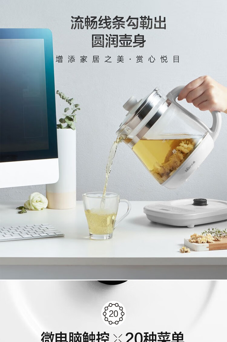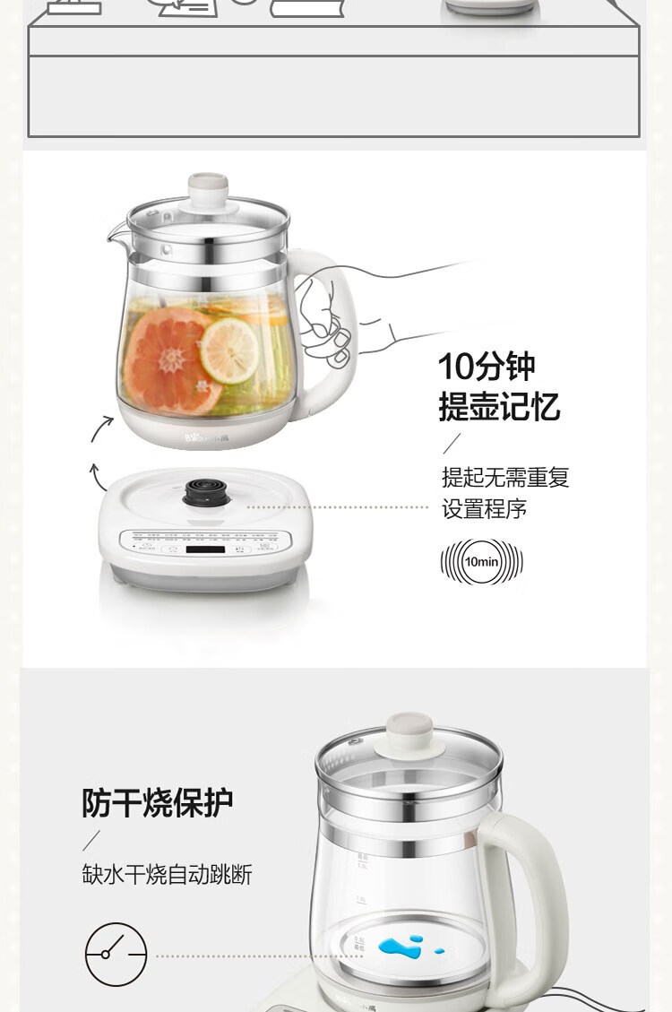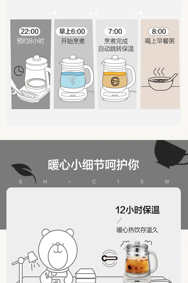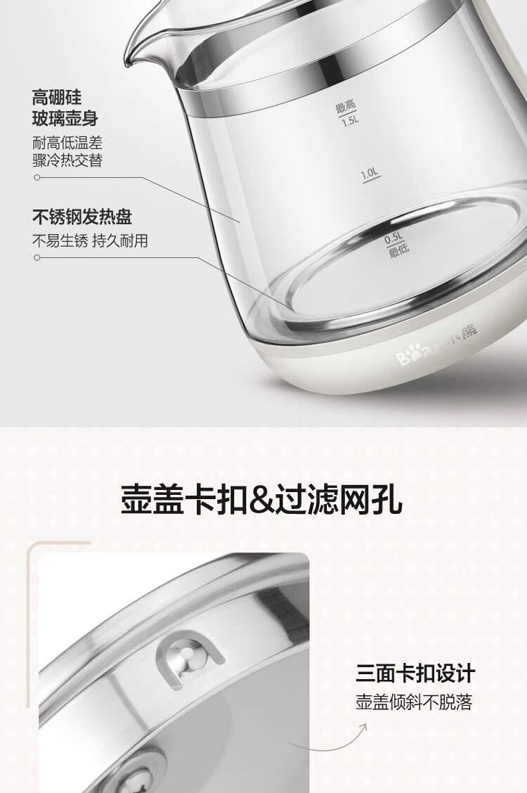 积分免费兑:小熊(Bear)养生壶煮茶器多功能电热水壶迷你玻璃花茶壶保温热奶壶 YSH-C15W