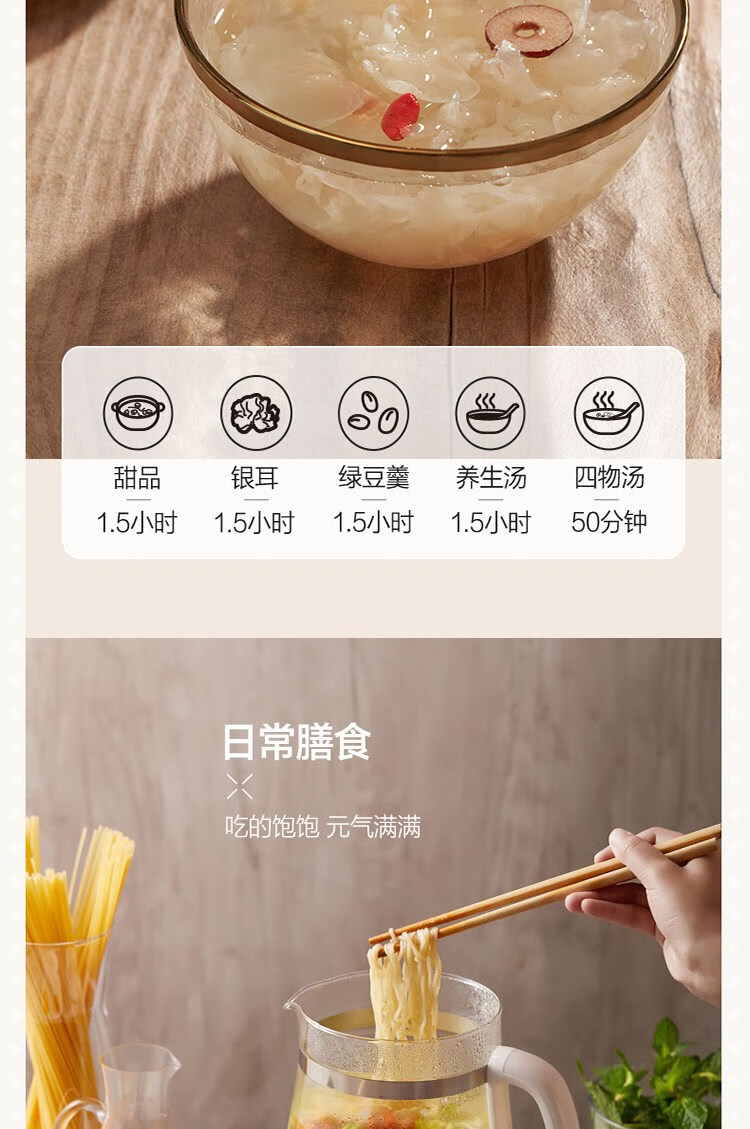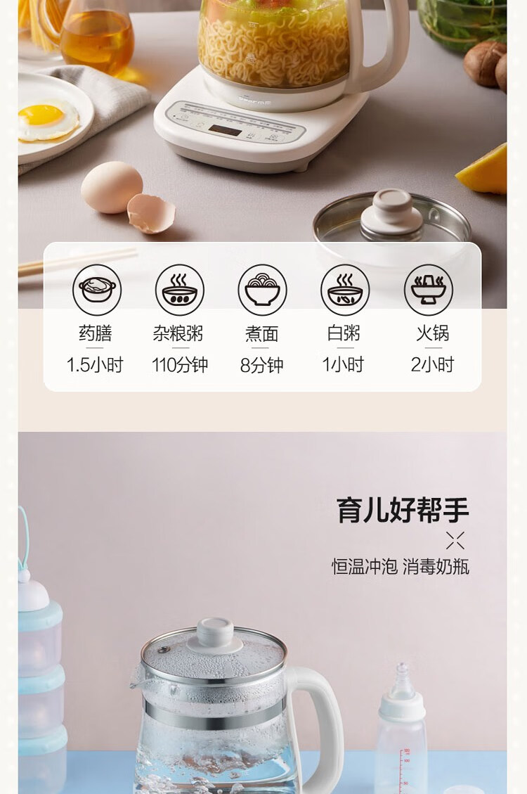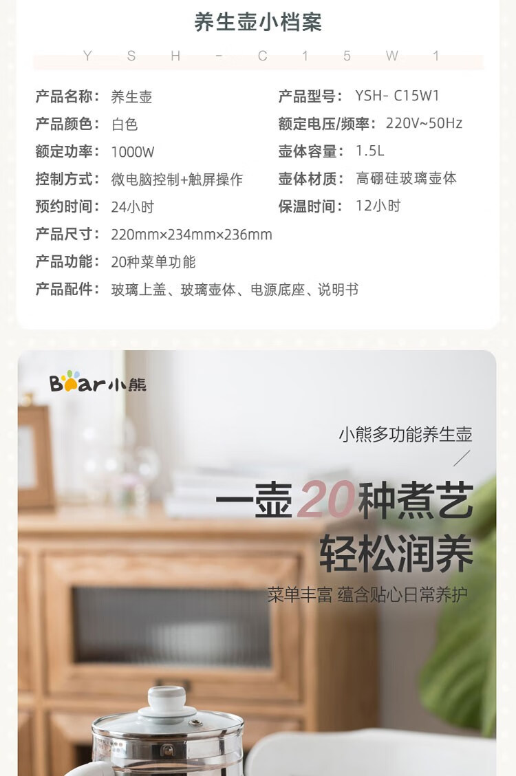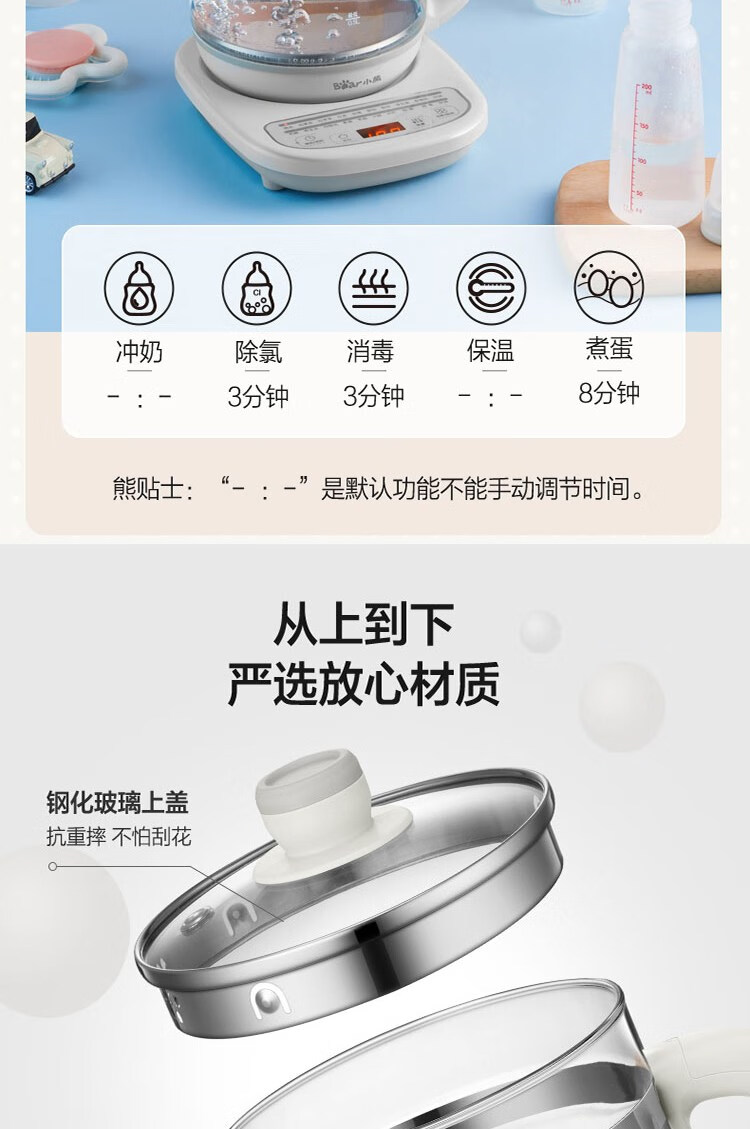 积分免费兑:小熊(Bear)养生壶煮茶器多功能电热水壶迷你玻璃花茶壶保温热奶壶 YSH-C15W