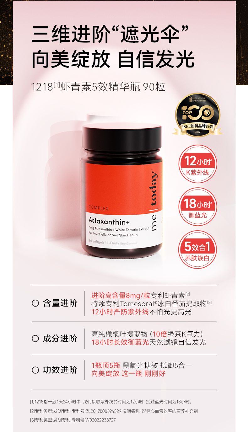 【年货价】Metoday 虾青素5效精华瓶 90粒
