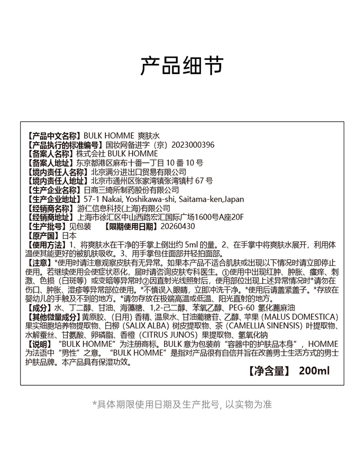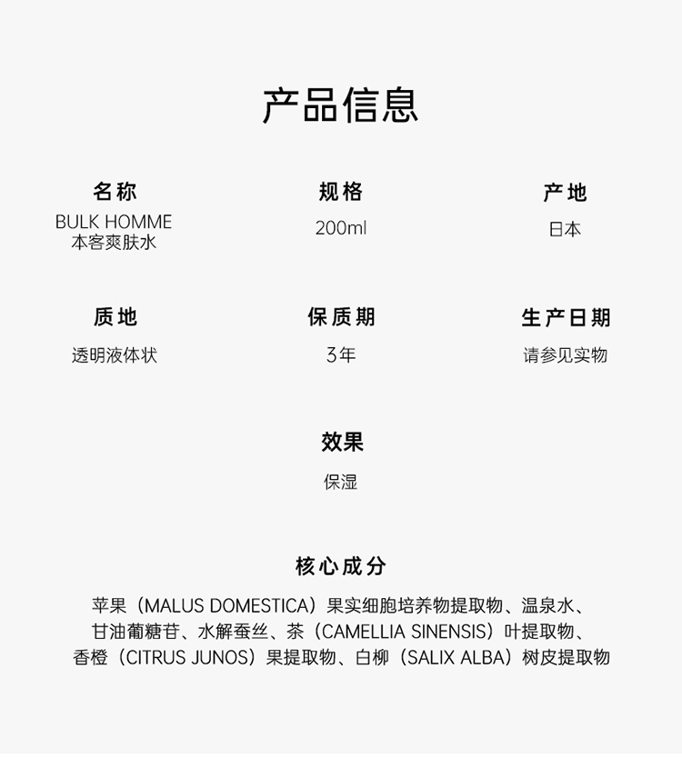 Bul khomme 本客 男士爽肤水 200ml【2026.6】