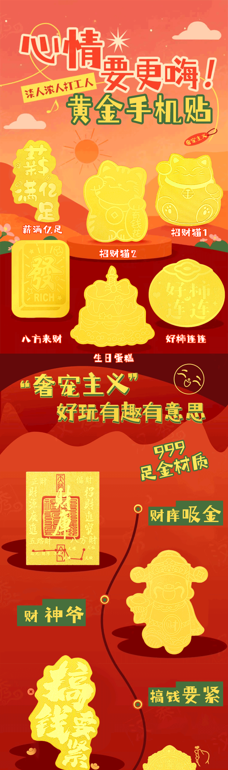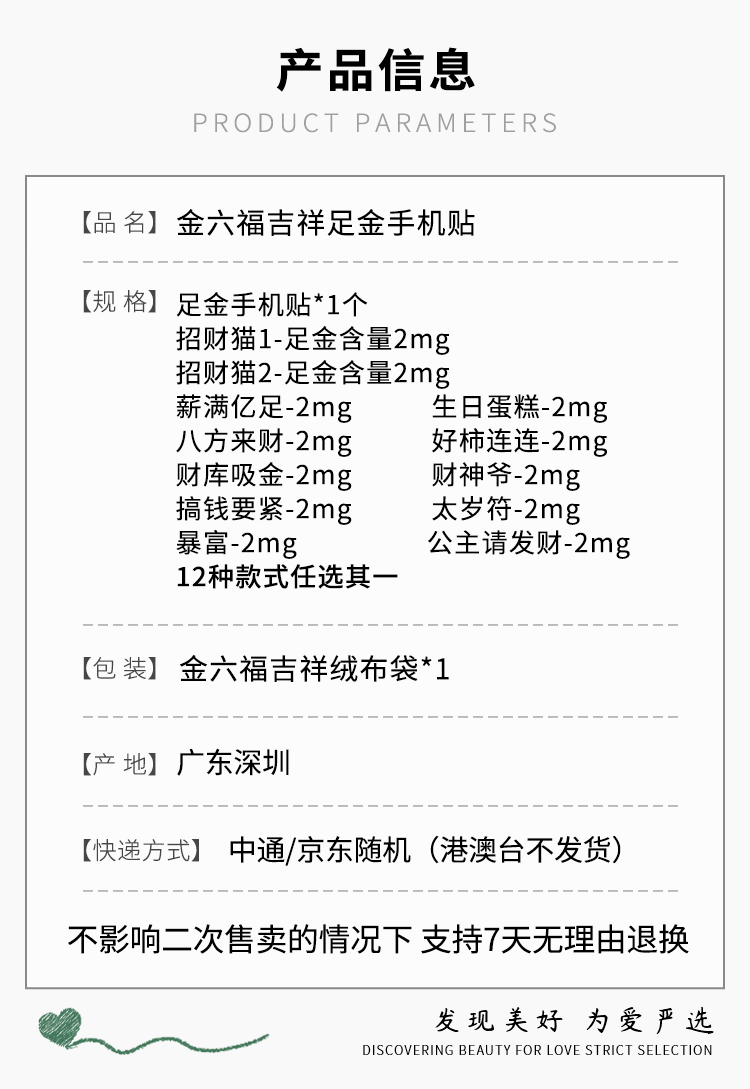 【金六福吉祥 足金手机贴】新年添彩头 金光闪闪 好运拉满 足金含量2mg(72h发货)