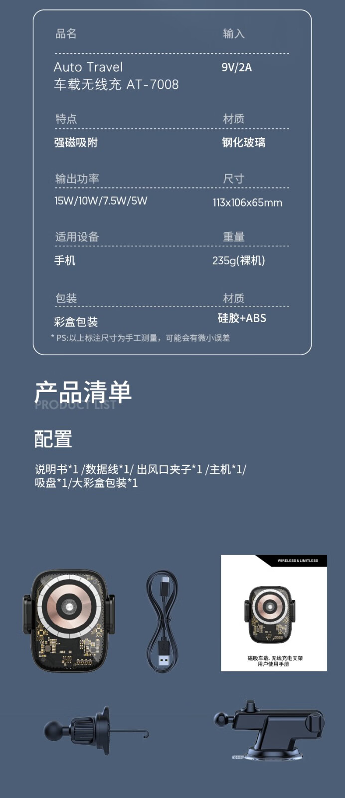 Auto Travel美旅 智能车载无线充电支架 AT-7006