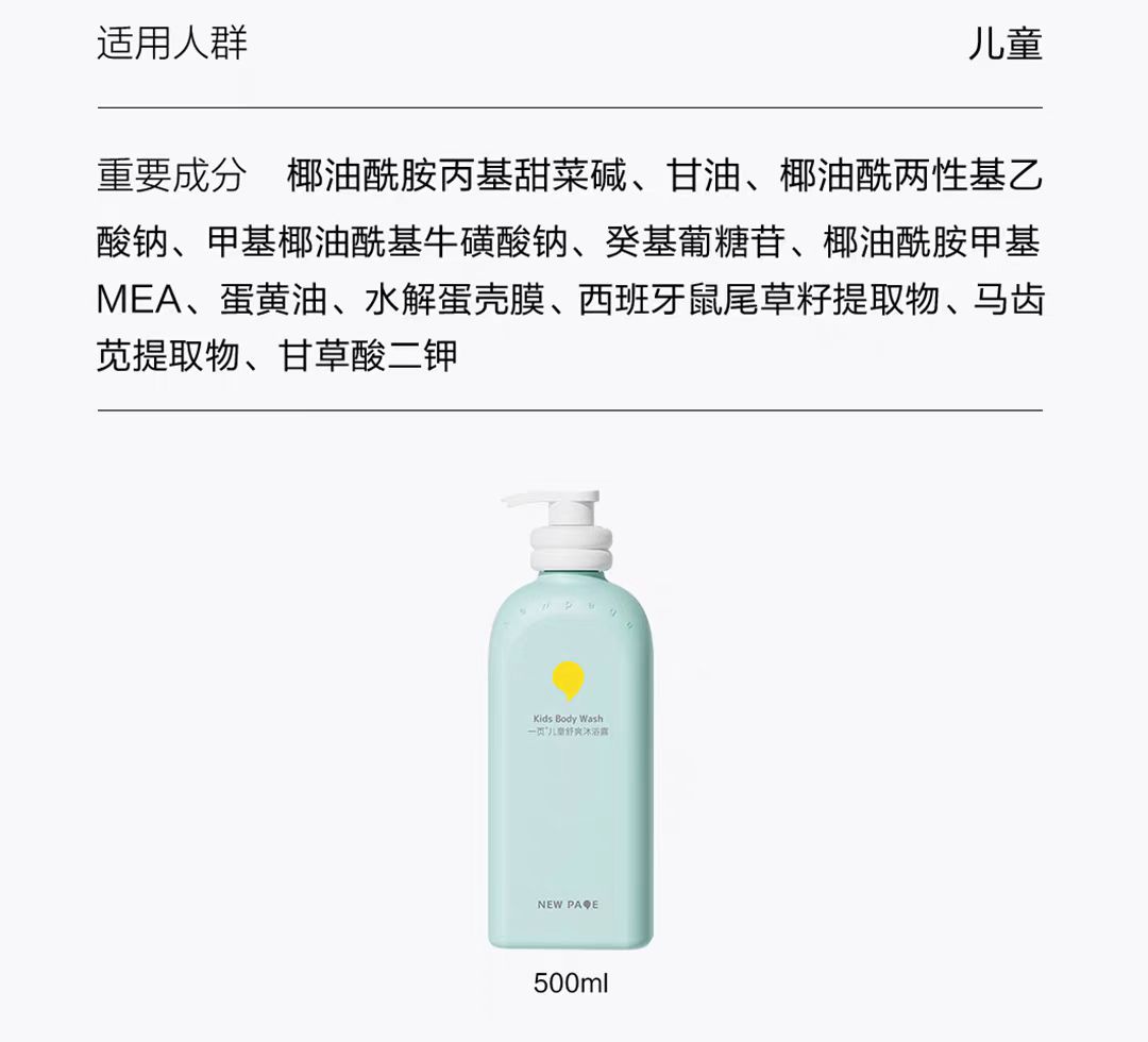 【 每满300-40】newpage一页儿童舒爽沐浴露500ml氨基酸男女孩宝宝大童专用3岁
