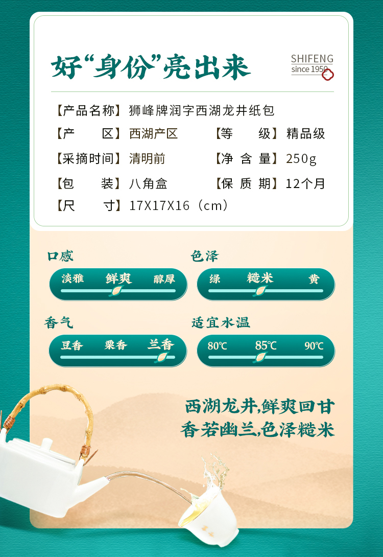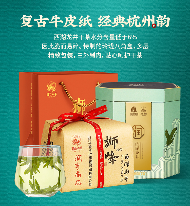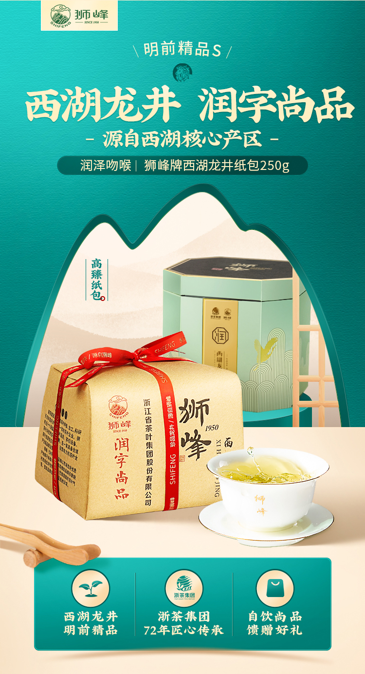 狮峰牌西湖龙井狮龙润字精品纸包250g.WN
