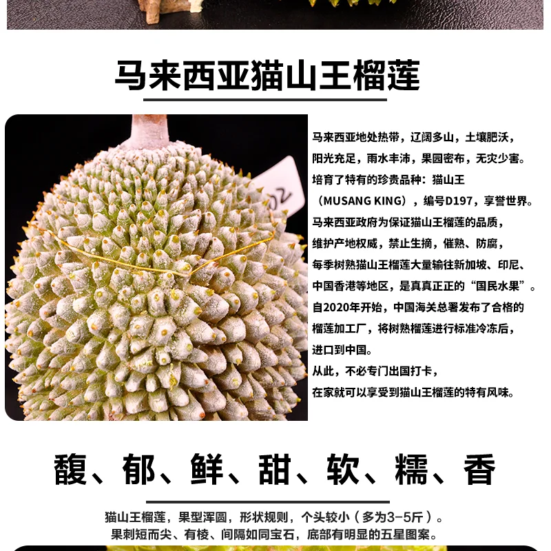 马来西亚液氮冷冻猫山王榴莲D197【2号果】【实物/礼券】
