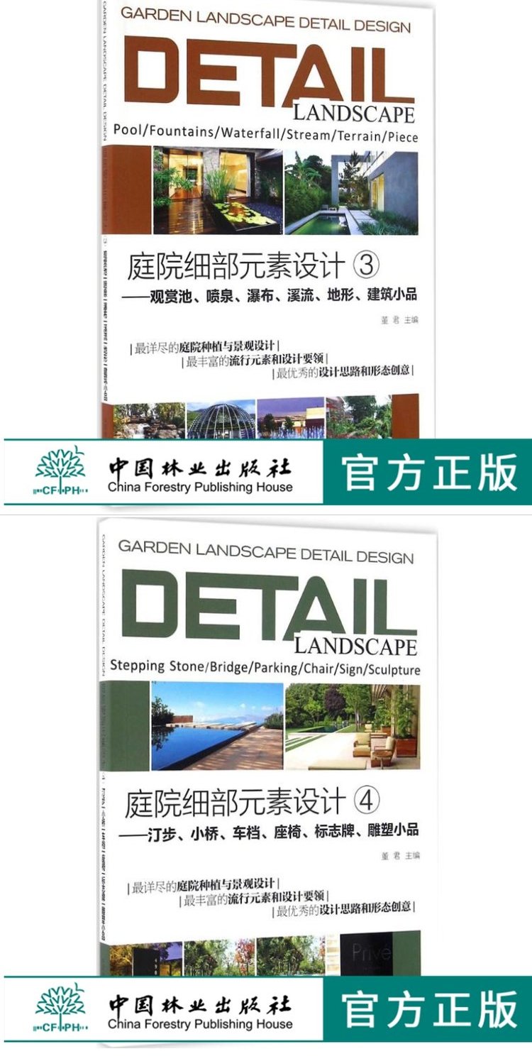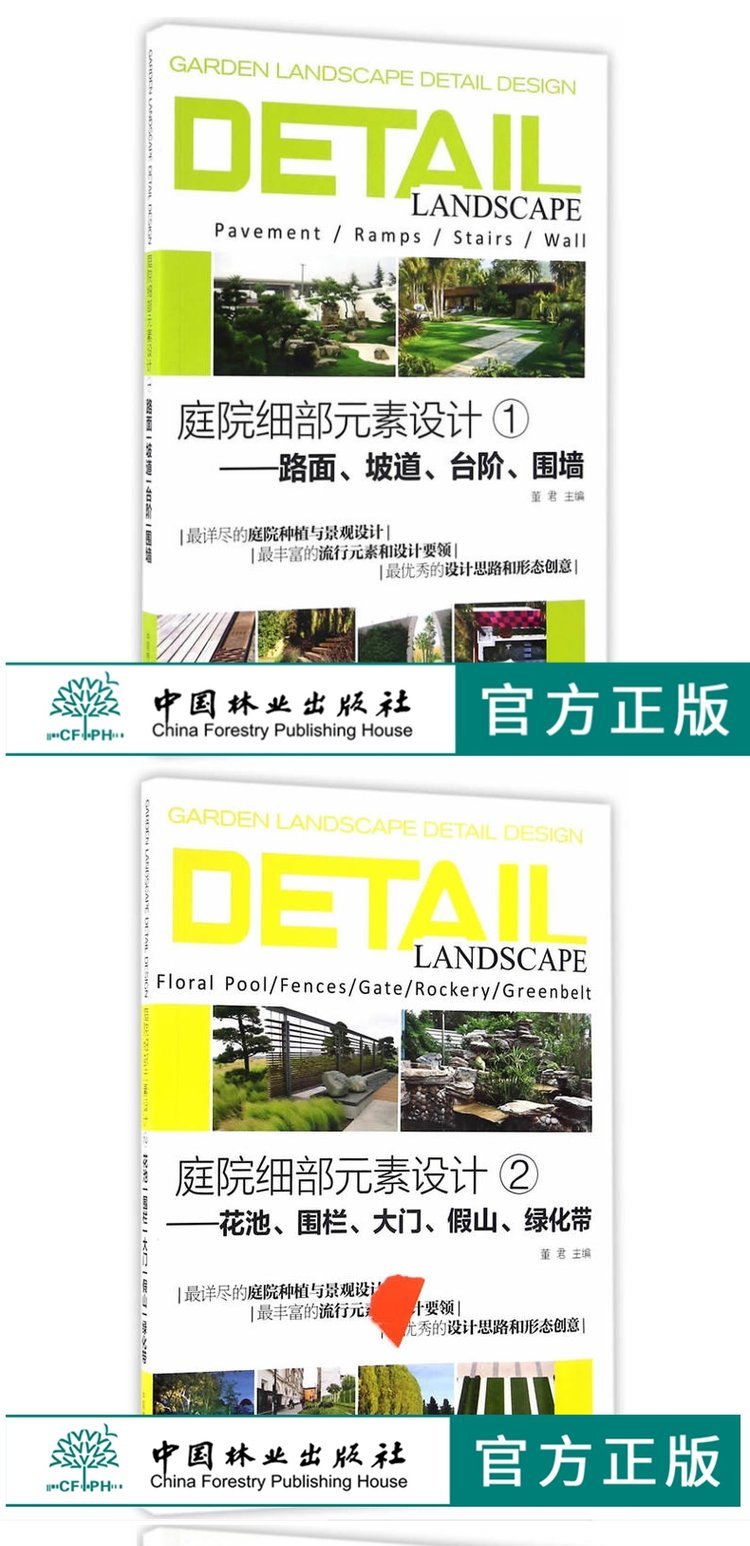 套装 庭院细部元素设计1234 路面坡道台阶围墙花池围栏大门假山绿化带观赏池喷泉瀑布溪流地形建筑汀步小桥车档座椅标志牌雕塑小品