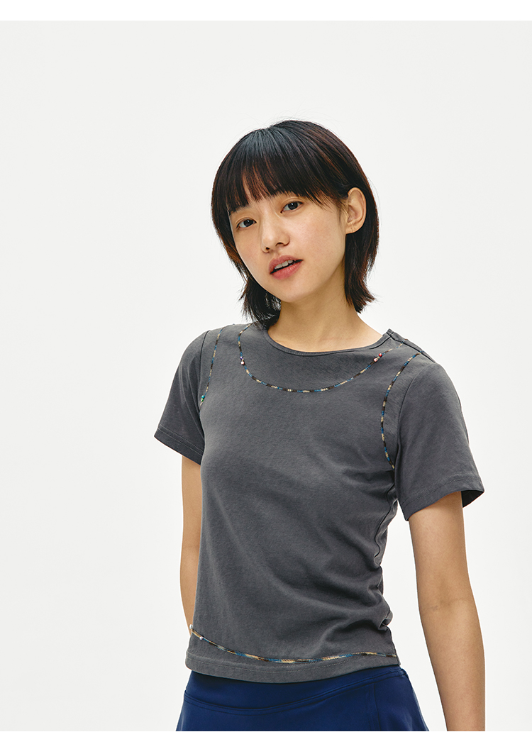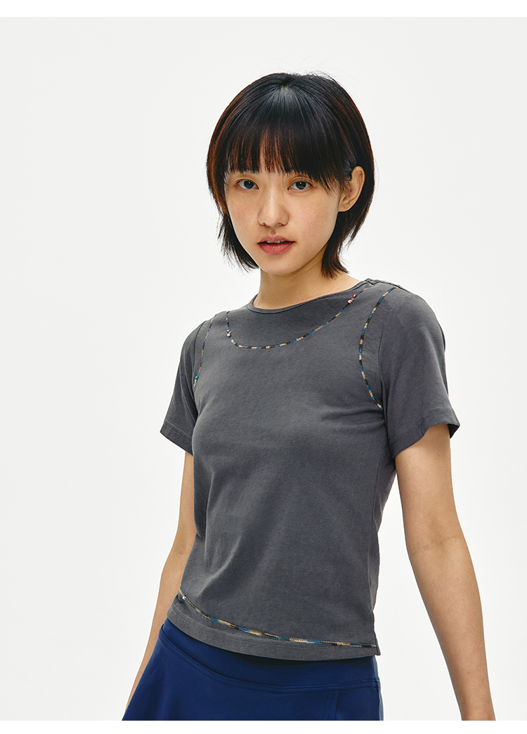 CryingCenter 彩线雪花纱正肩修身短袖tee 哭喊中心