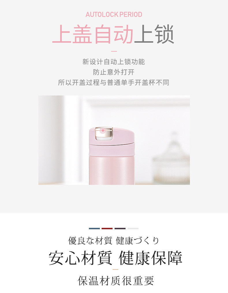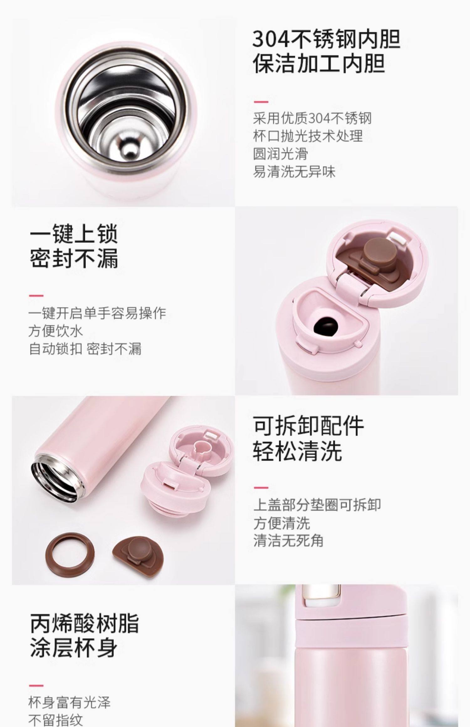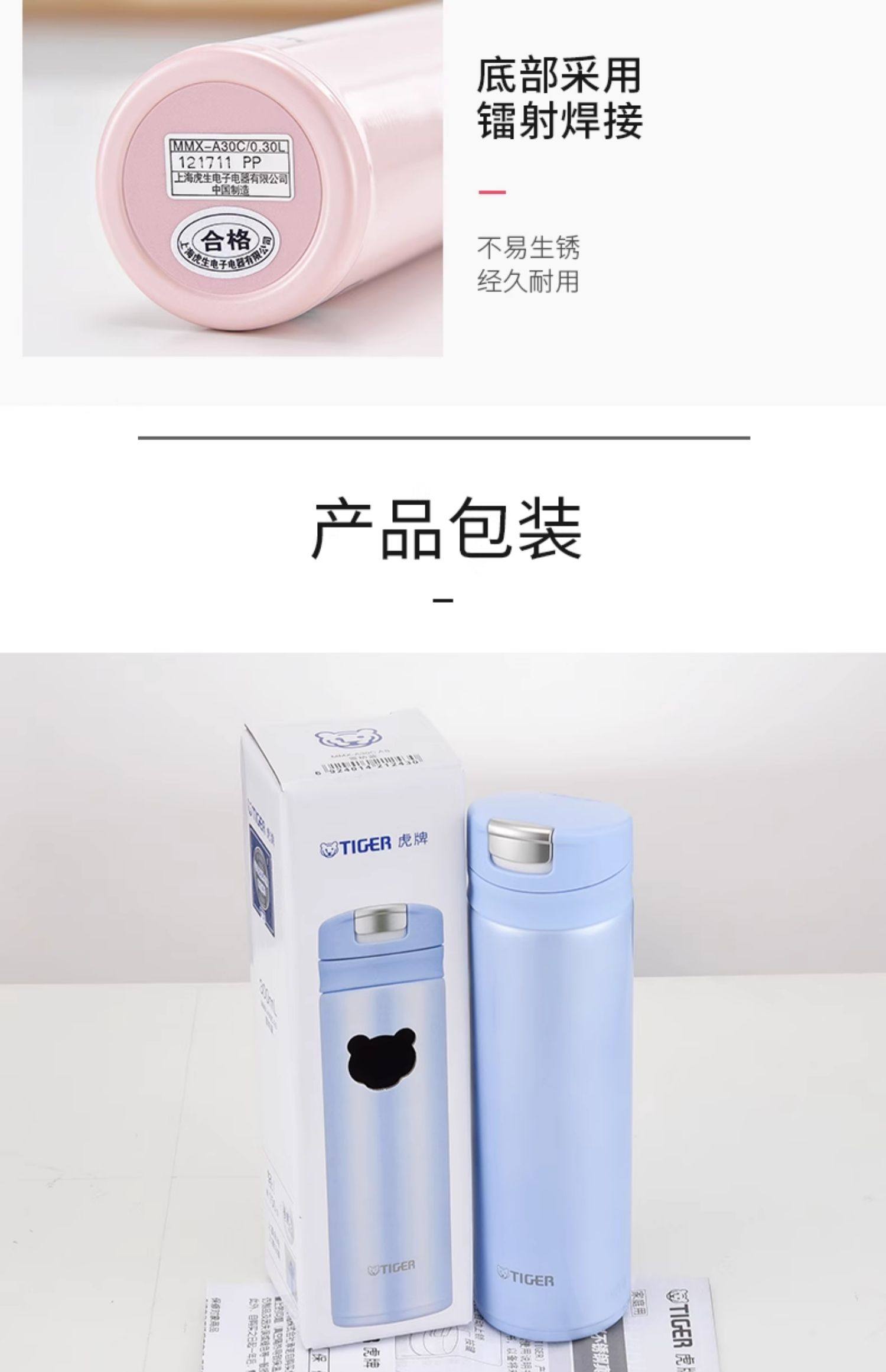 TIGER 虎牌 单手易开型 不锈钢真空杯MMX-A30C 粉色 300ml