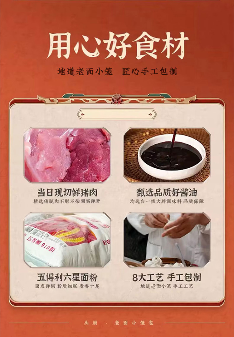 【头厨浙江嵊州小笼包】手工包制老面小笼包 松软饱满有嚼劲 懒人速食早餐