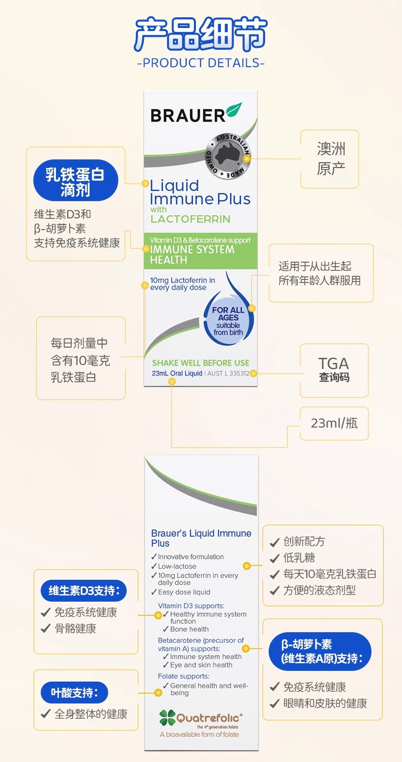 【保税仓】Brauer蓓澳儿乳铁蛋白滴剂23ml