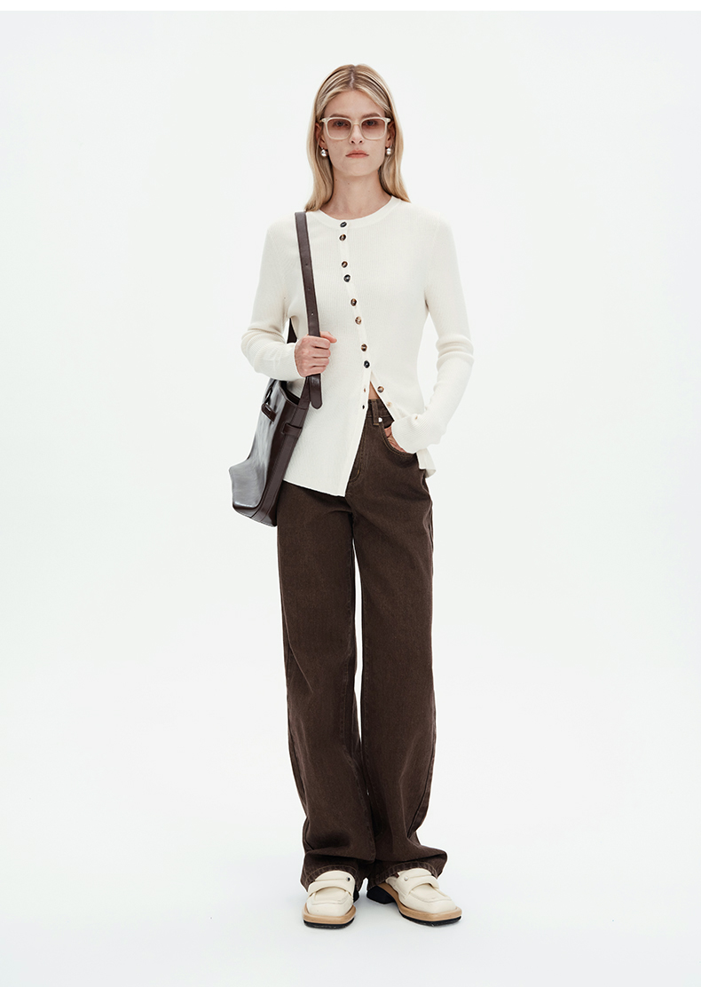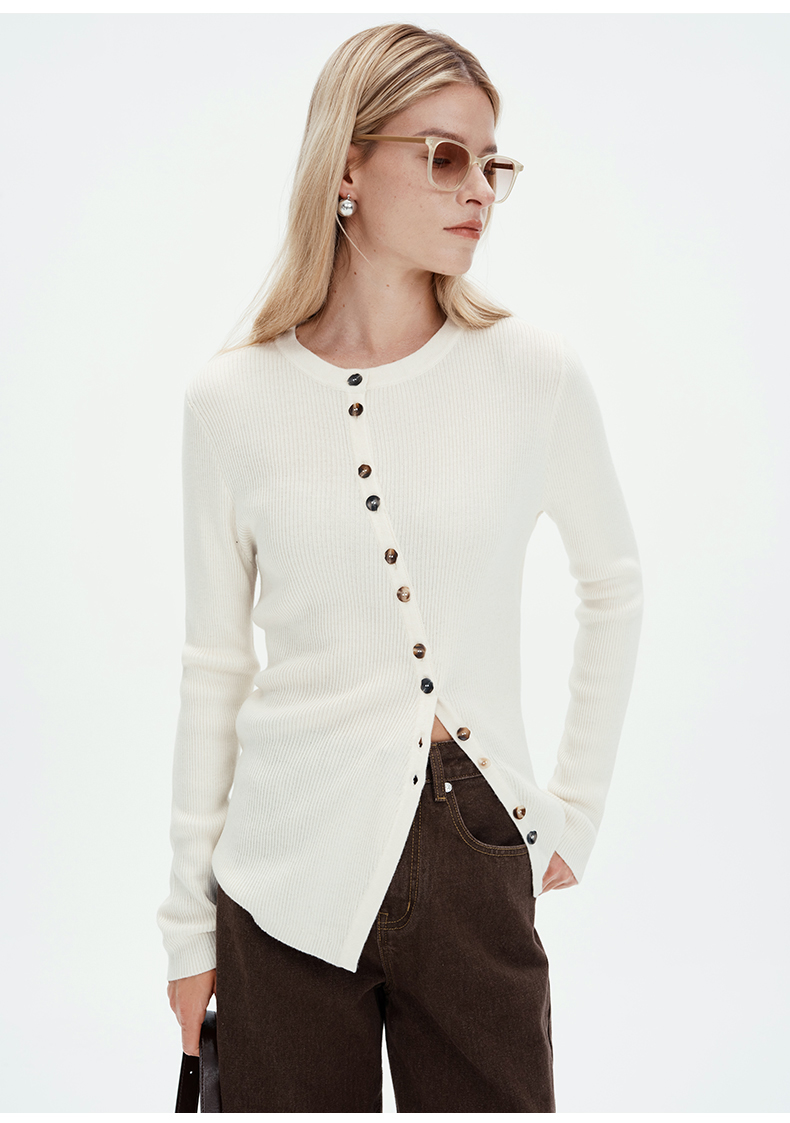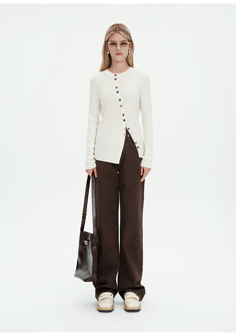 SELFWHO羊绒羊毛混纺针织衫开衫女秋季2024新款修身慵懒长袖上衣