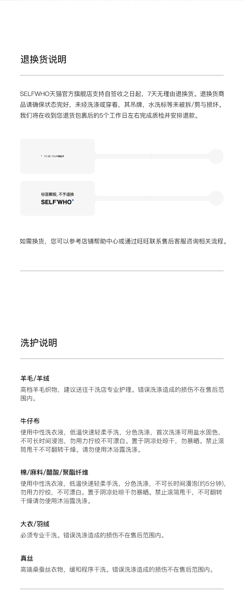 - SELFWHO——将街头文化融入高级成衣,以服装为载体,用廓形、解构设计和艺术意象探寻极致的生活方式。特立独行,知行合一,TO BE YOURSELF。