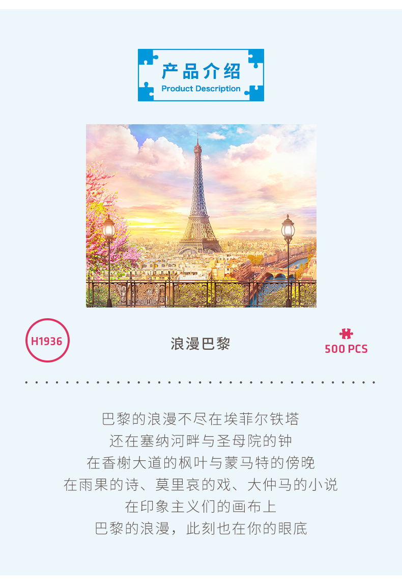 500片 平面拼图 塑料拼图 H1936 浪漫巴黎