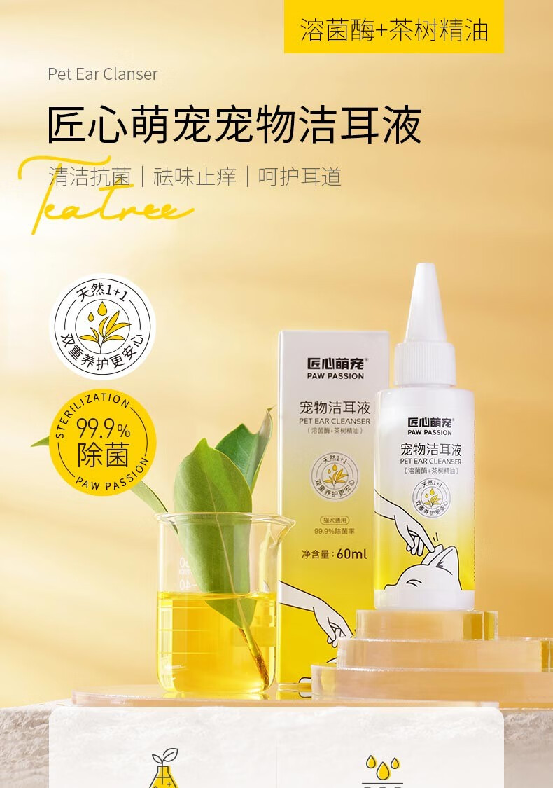 匠心萌宠 宠物洁耳液(溶菌酶+茶树精油)60ml
